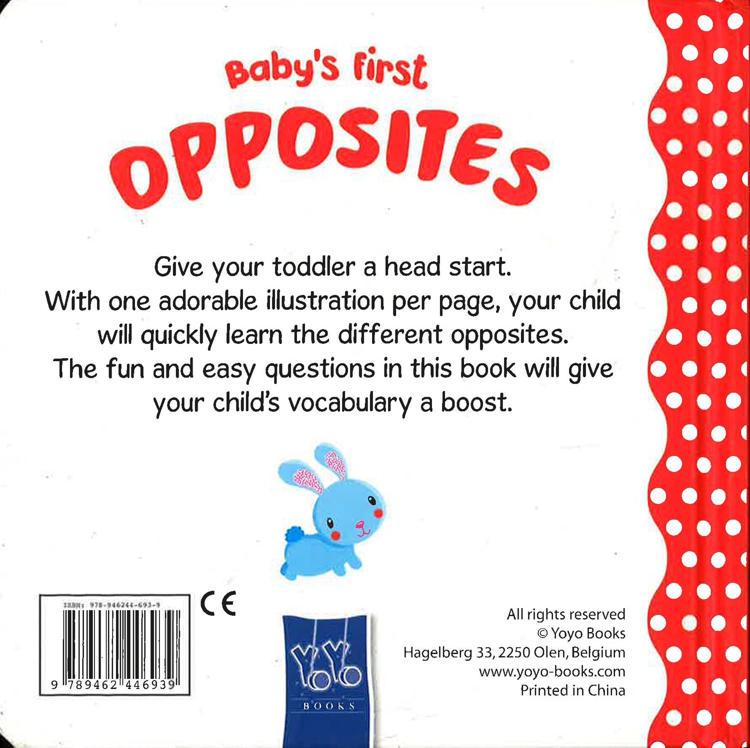 Give your toddler a head start. With one adorable illustration per page, your child will quickly learn the different opposites. The fun and easy questions in this book will give your child's vocabulary a boost.