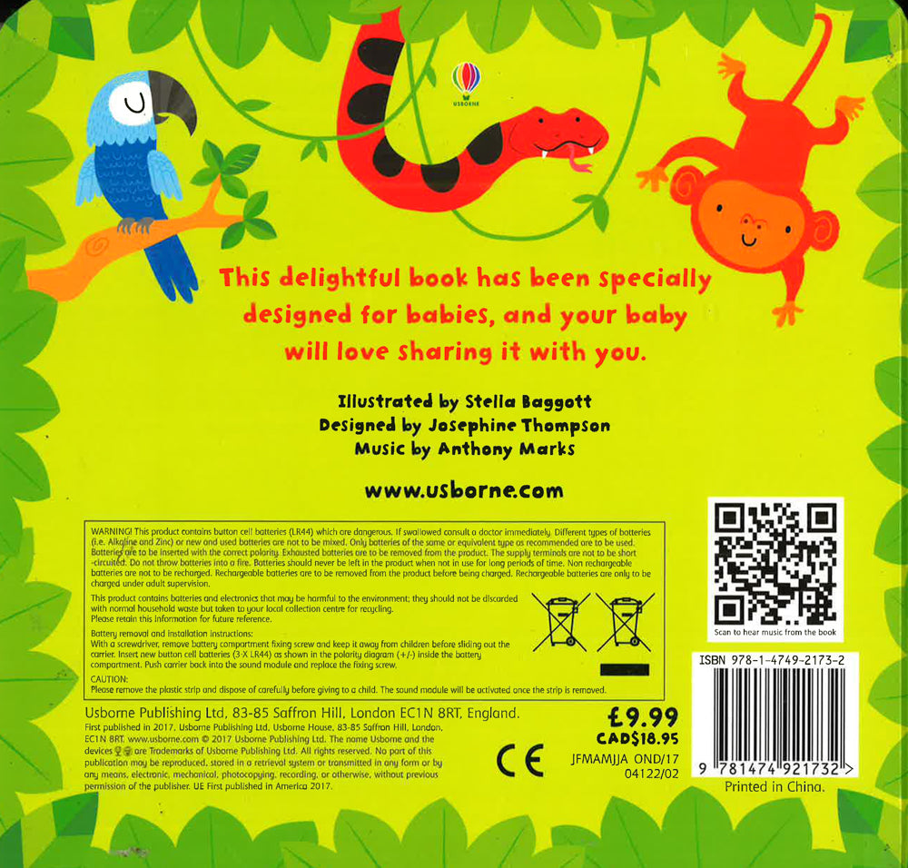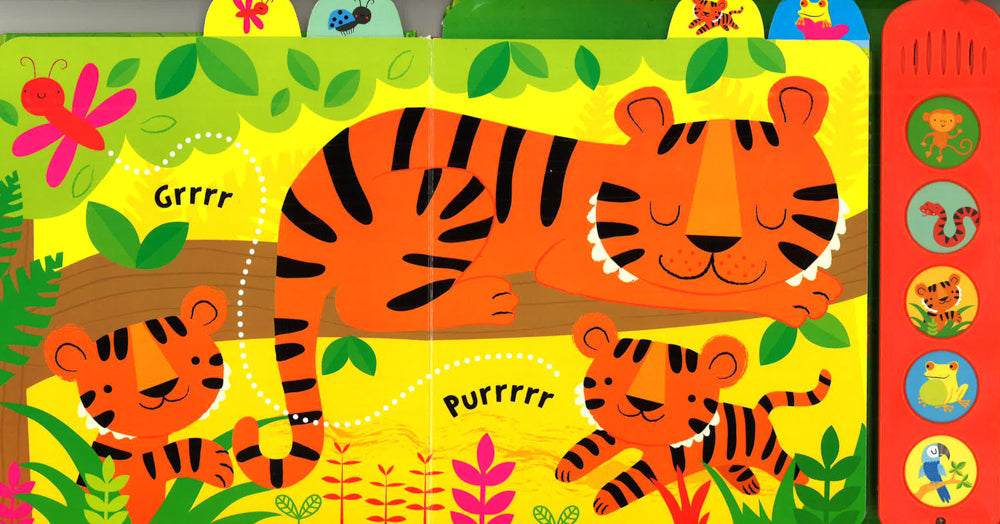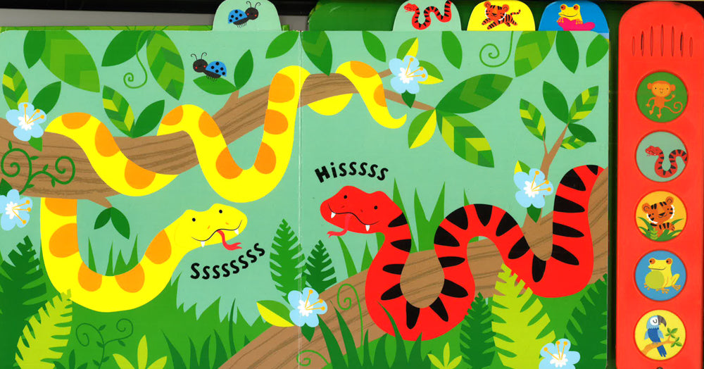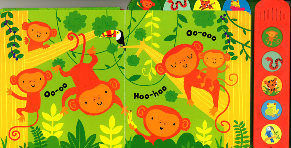 Babies will love discovering the cheeky monkeys, hissing snakes, purring tigers and squawking parrots on the colourful pages of this book. They can press the buttons to hear the monkey, snake, tiger, frog and parrot sounds - and try making the noises themselves! A joy to share and talk about with babies and toddlers alike.Babies will love discovering the cheeky monkeys, hissing snakes, purring tigers and squawking parrots on the colourful pages of this book. They can press the buttons to hear the monkey, snake, tiger, frog and parrot sounds - and try making the noises themselves! A joy to share and talk about with babies and toddlers alike.