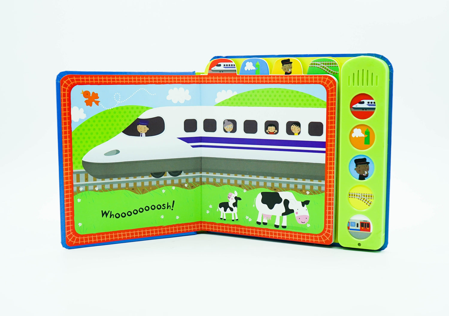 A delightful, brightly-coloured musical book for babies, full of trains that chug and chuff along. Includes a sound panel with buttons that play musical train noises for each page composed by Anthony Marks. A joy to share, this book will engage even a tiny baby's attention and, as they grow, babies will love to press the sound buttons themselves.