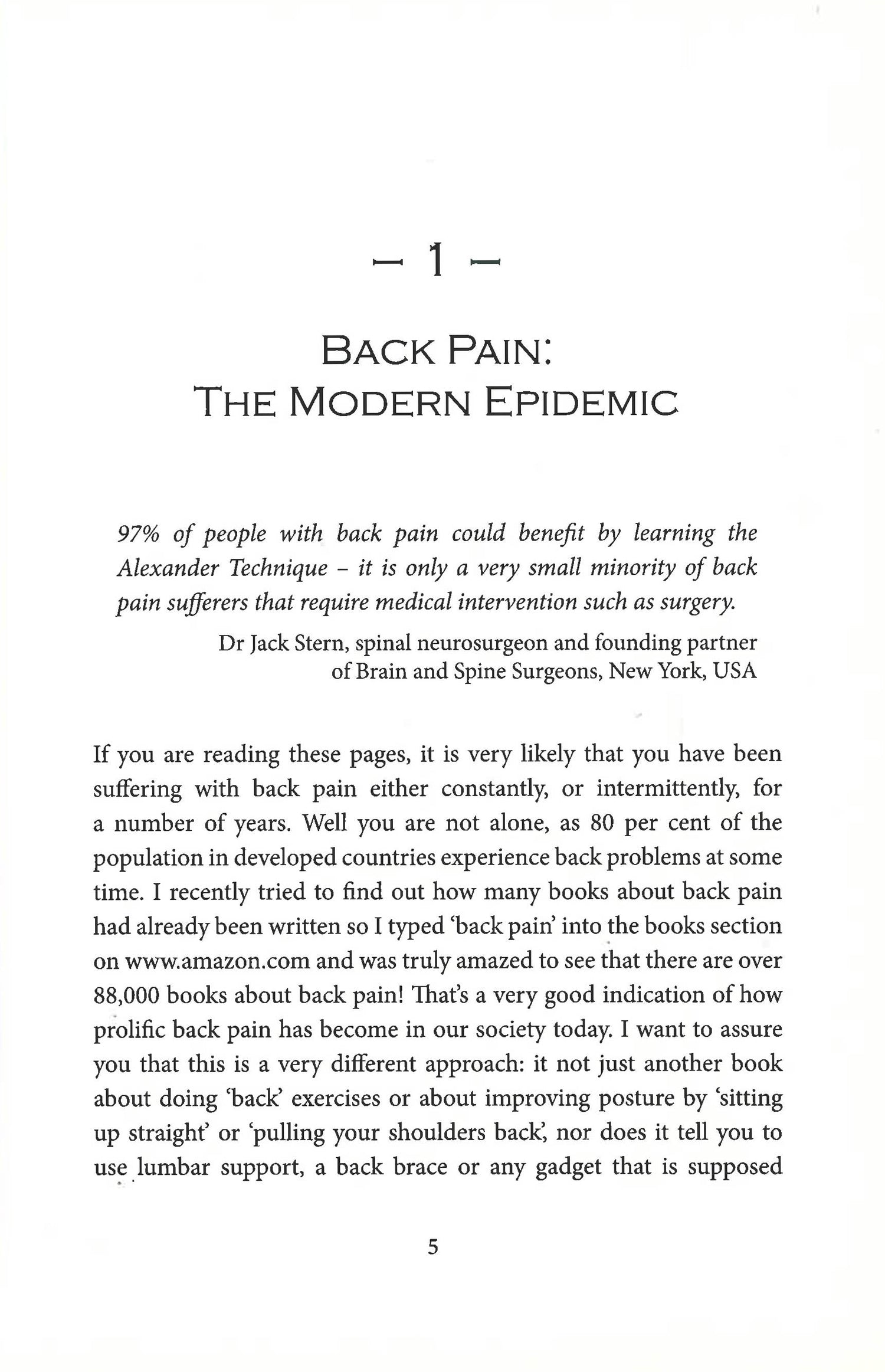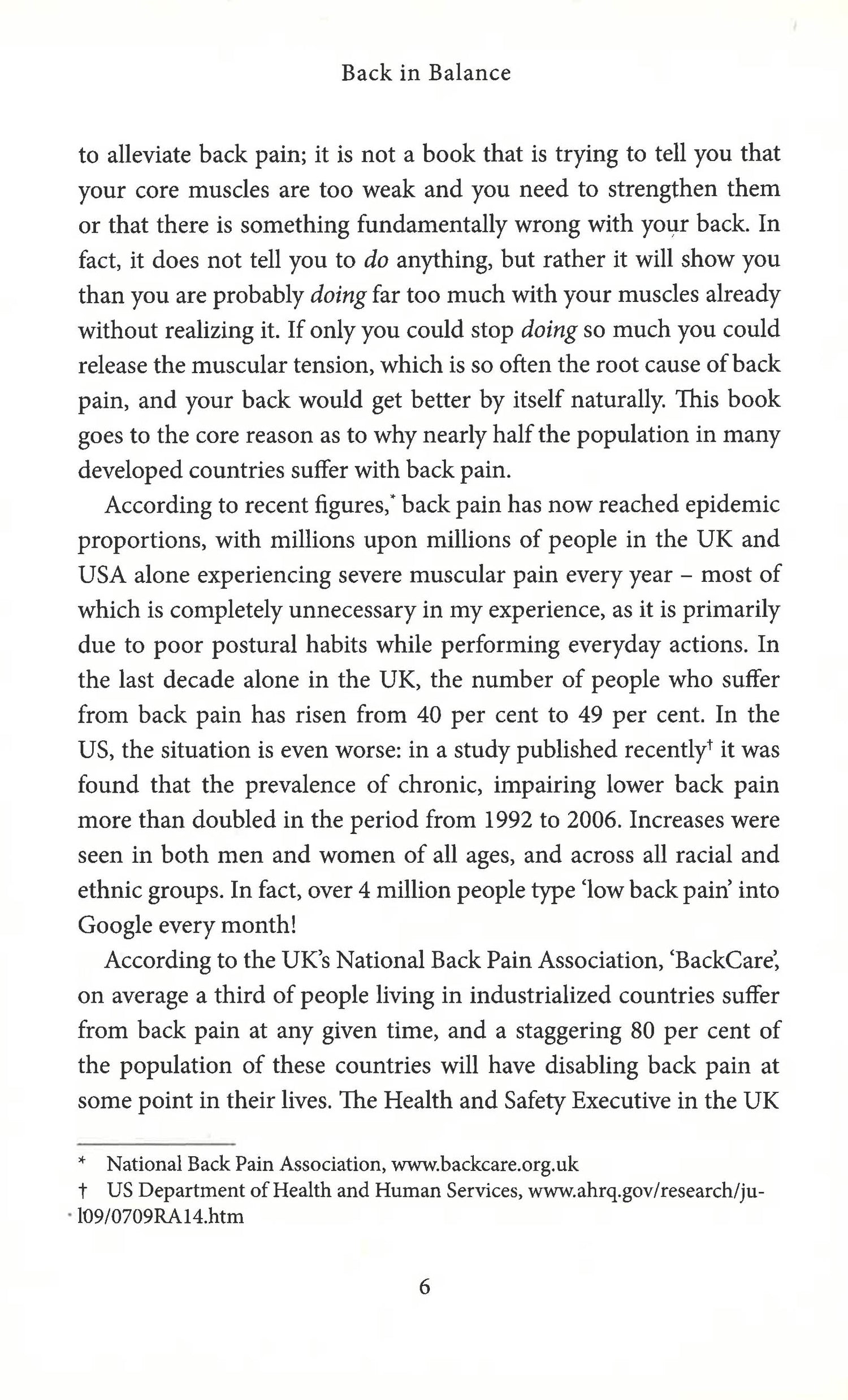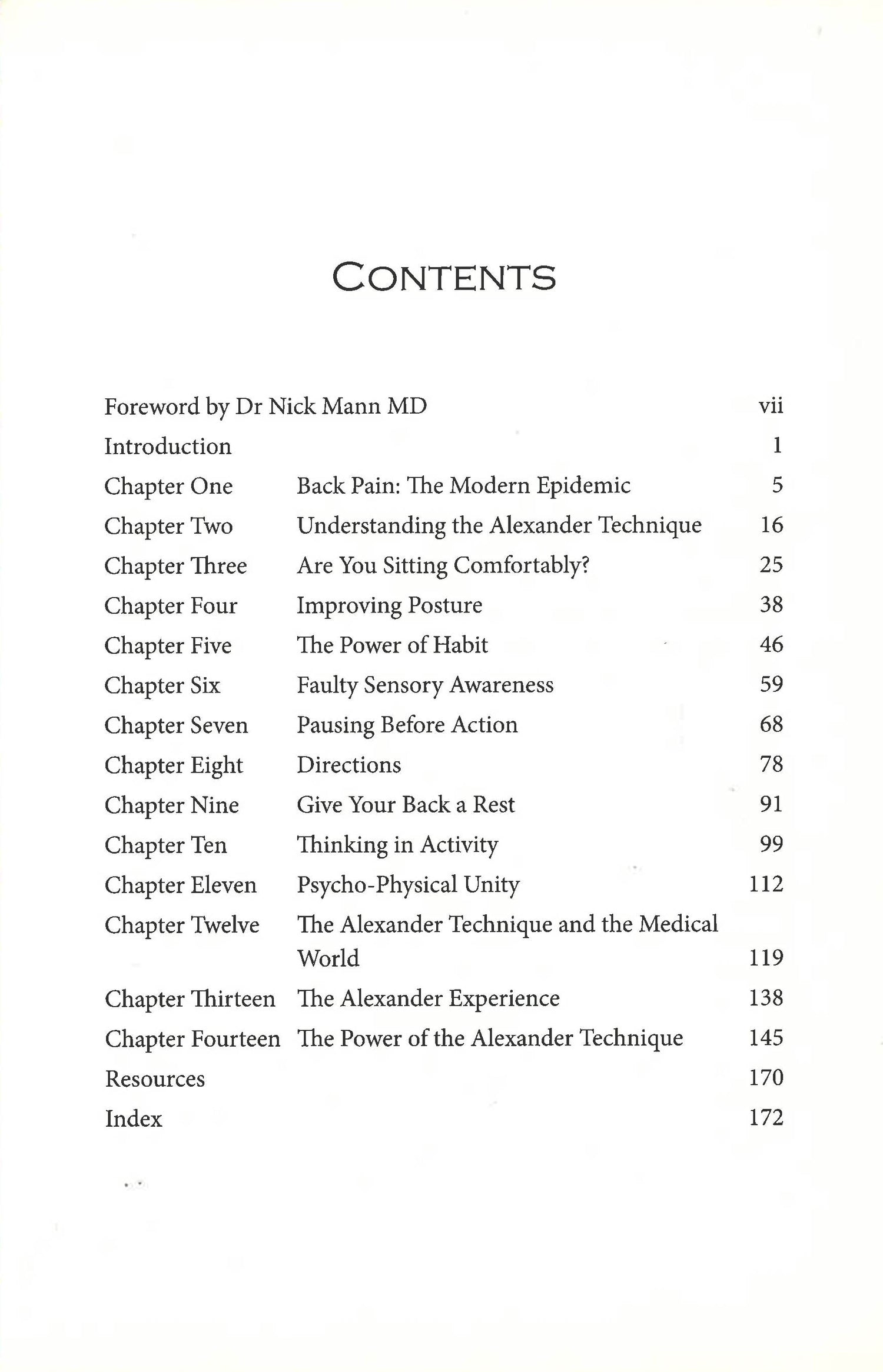 According to recent figures, back pain has now reached epidemic proportions with millions of people across the globe experiencing severe muscular pain every year - in fact, over 4 million people now input 'lower back pain' into Google every month. Most are suffering completely unnecessarily, as the root cause of their pain stems primarily from poor postural habits while performing everyday actions. In the last decade alone, the number of people in the UK who have suffered from back pain has risen to nearly 50% of the population. But help is at hand with Back in Balance, an easy-to-understand practical book designed to help readers discover the cause of their own individual back problem and offer them an effective and lasting solution to their suffering. This essential guide draws on many of the principles of the Alexander Technique, a practical way of releasing muscular tension throughout the body. Helping the reader to discover how their posture and movements may be having a detrimental effect on their health, this guide offers new ways of performing daily activities, with the aim of reducing muscular tension and stress on the bones and joints - and making their lives pain free.