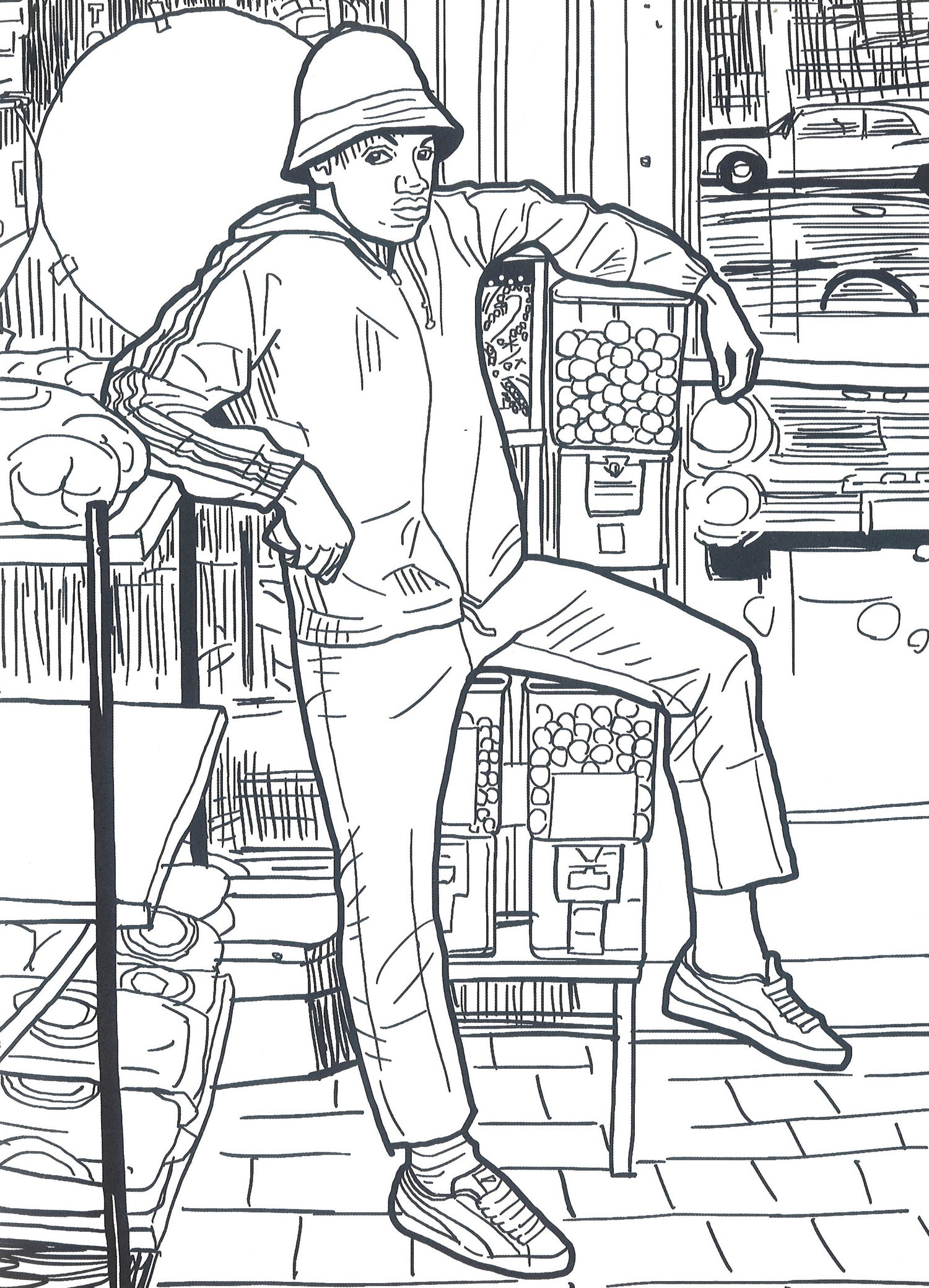 Straight from the old-school streets of NYC at the dawn of the hip-hop scene comes Back in the Days Coloring Book. Here is your chance to redraw the birth of old-school hip-hop fashion: hangin' in Harlem, kickin' it in Queens, and cold chillin' in Brooklyn. Based on the legendary and original street-style book, Back in the Days by Jamel Shabazz. Style with an attitude not seen in fashion for another 20 years to come, Shabazz's subjects strike poses that put supermodels to shame-showing off Kangol caps and Cazal glasses, shell-top Adidas and suede Pumas with fat laces, shearling coats and leather jackets, gold dookie chains, door-knocker earrings, name belts, boom boxes, and other 80s designer finery. Featuring 30 original drawings, it's now your turn to get in on the action. Pull out your Crayolas and markers and help everyone look their best by adding your own vibrant colors to these fly outfits. Fun for ages 1 to 100.