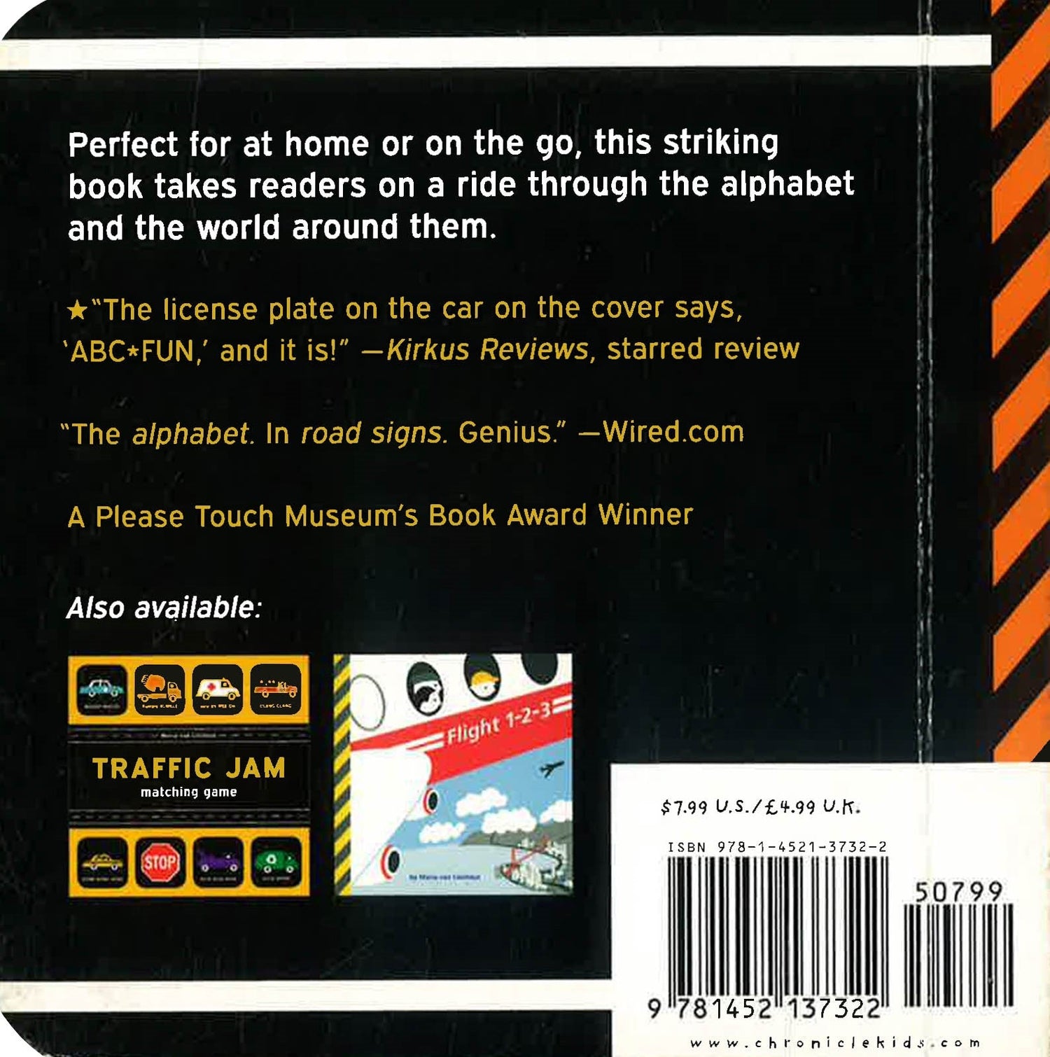 Vroom! Vroom! Whether on a cross-country road trip or a quick jaunt across town, there's no end to what a child can see from the backseat of a car. Using familiar road signs, this striking book introduces little ones to the alphabet as well as the world around them. Equally suited for transportation obsessed children and those just learning their ABCs and newly republished on sturdy boards, perfect for little hands, this fresh and dynamic book will entertain and educate at home, in the classroom and on the go.