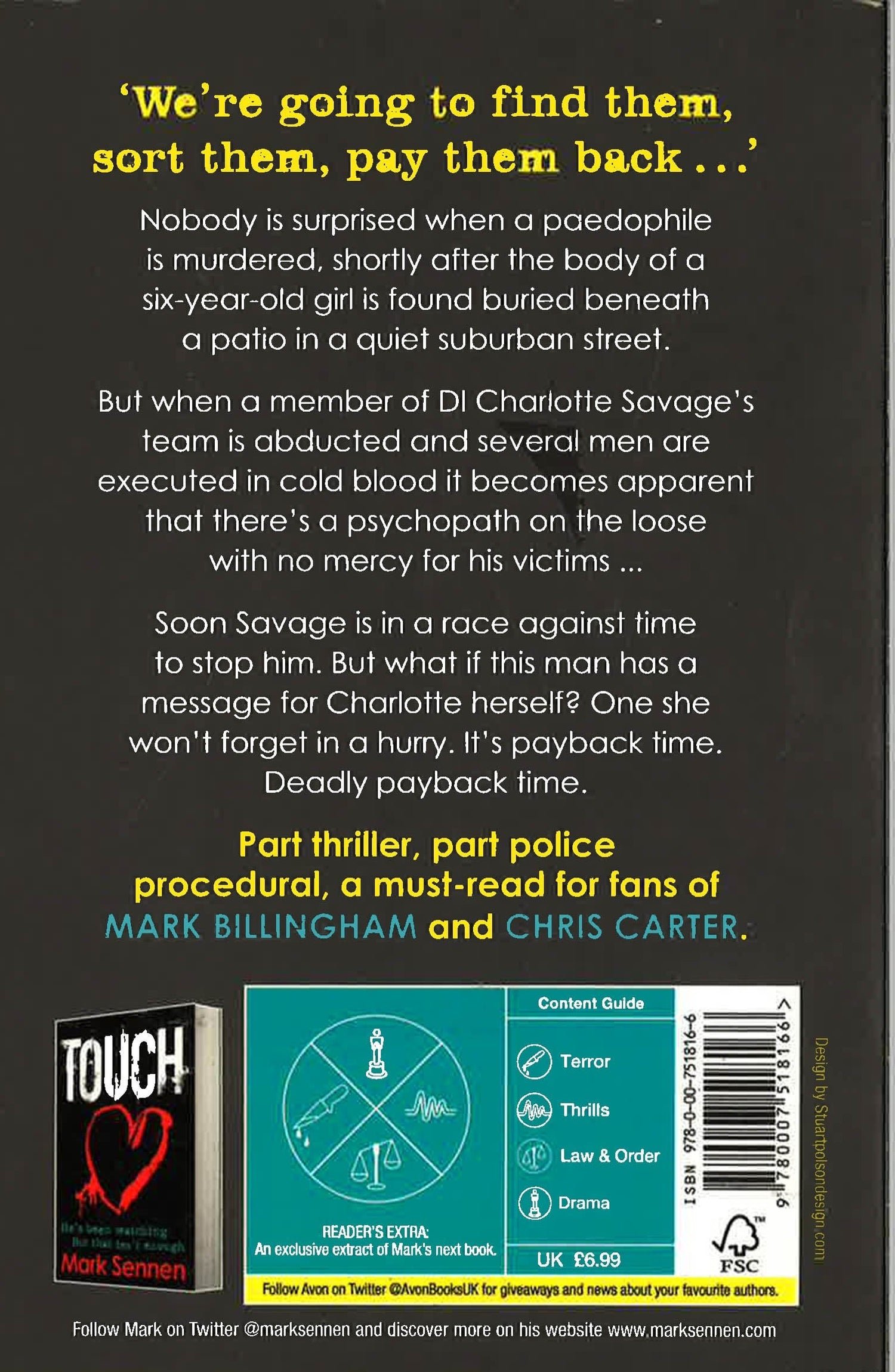 When the body of a six-year-old girl is found buried beneath a patio, nobody is surprised when a local paedophile is murdered shortly afterwards. But when a member of DI Charlotte Savage's team is abducted and several men are executed in cold blood it becomes apparent that there's a psychopath on the loose with no mercy for his victims ... It becomes clear that the killer isn't selecting his victims at random and soon Savage is in a race against time to stop him. But what if this man has a message for Charlotte herself? One she won't forget in a hurry. It's payback time. Deadly payback time.