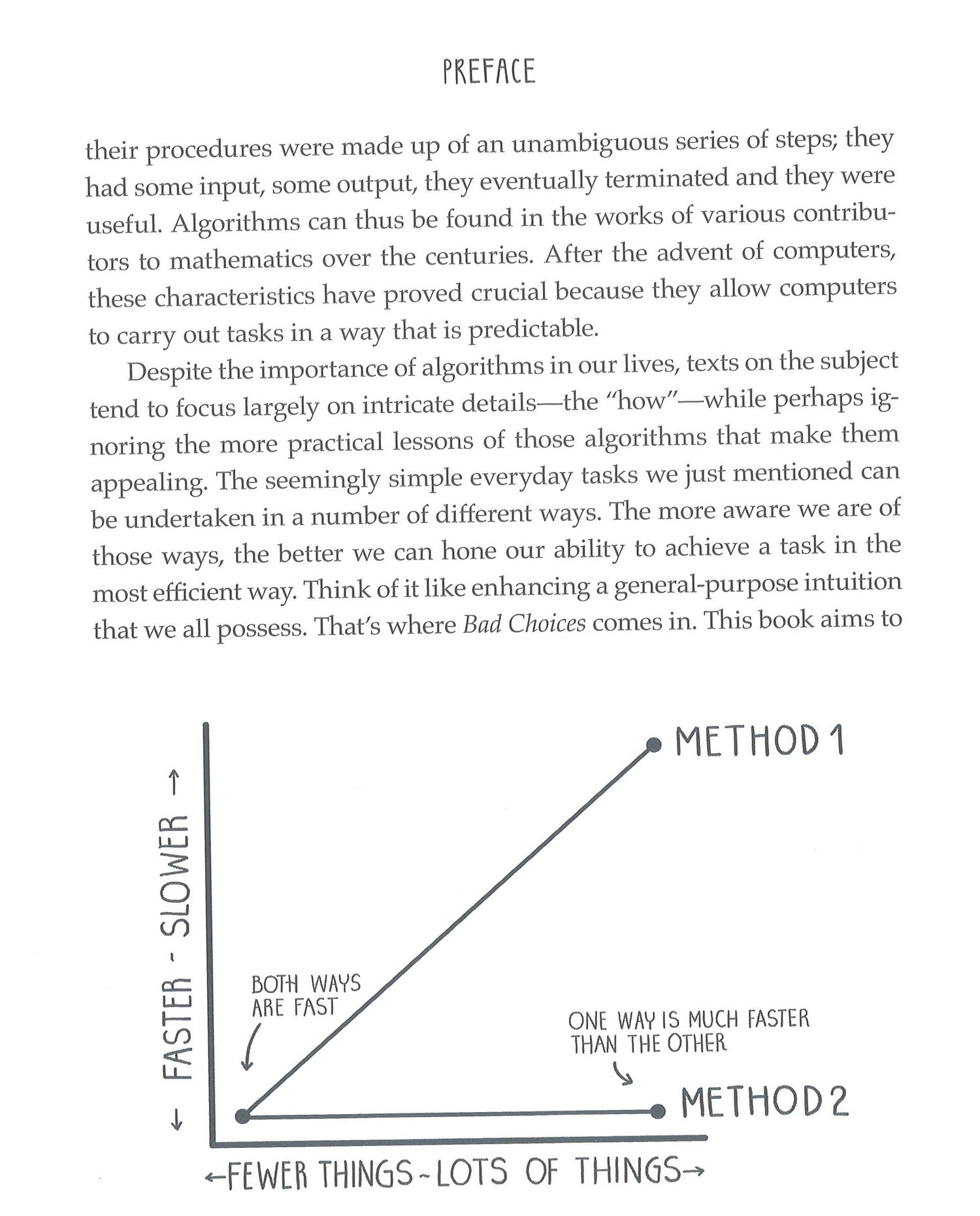 - And more As you better understand algorithms, you'll also discover what makes a method faster and more efficient, helping you become a more nimble, creative problem-solver, ready to face new challenges. Bad Choices will open the world of algorithms to all readers, making this a perennial go-to for fans of quirky, accessible science books.