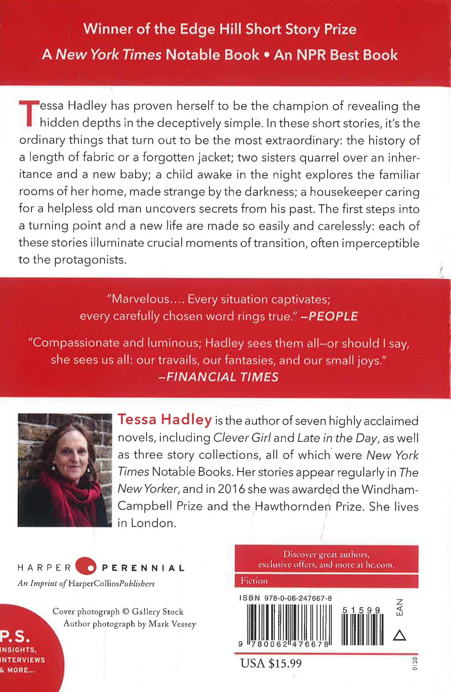 Tessa Hadley has proven herself to be the champion of revealing the hidden depths in the deceptively simple. In these short stories, it’s the ordinary things that turn out to be the most extraordinary: the history of a length of fabric or a forgotten jacket. Two sisters quarrel over an inheritance and a new baby; a child awake in the night explores the familiar rooms of her home, made strange by the darkness; a housekeeper caring for a helpless old man uncovers secrets from his past. The first steps into a turning point and a new life are made so easily and carelessly: each of these stories illuminate crucial moments of transition, often imperceptible to the protagonists.