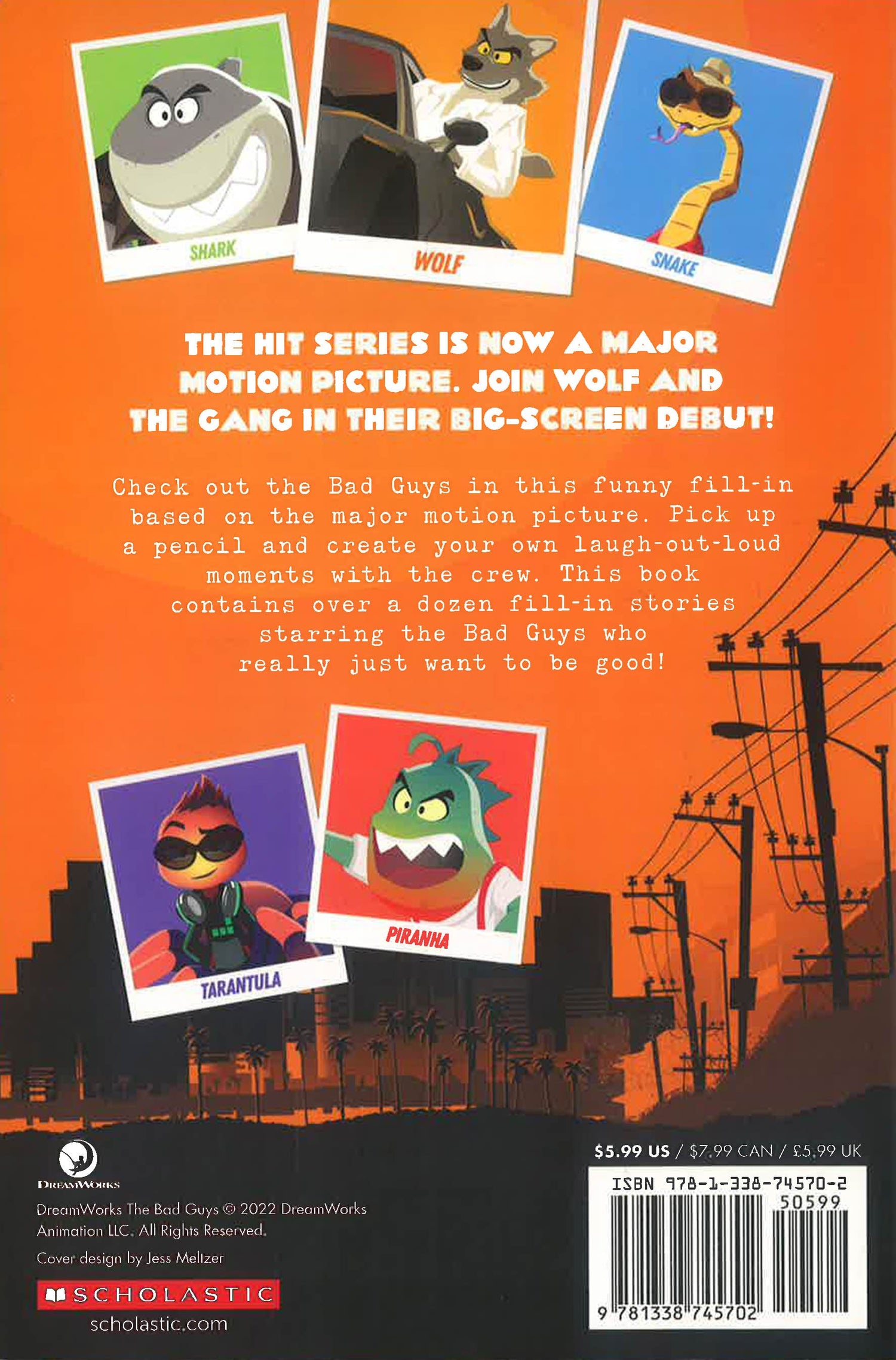 The hit series, The Bad Guys, is now a major motion picture. Join Mr Wolf and the gang in this delightful funny fill-in! Join the Bad Guys in this funny fill-in based on the major motion picture. Pick up a pencil and create your own laugh-out-loud moments with Mr Wolf and the gang. This book has over a dozen fun fill-in stories starring the Bad Guys who really just want to be good! Perfect for emerging readers and fans of the series Hours of fun Encourages imagination with loads of funny stories.