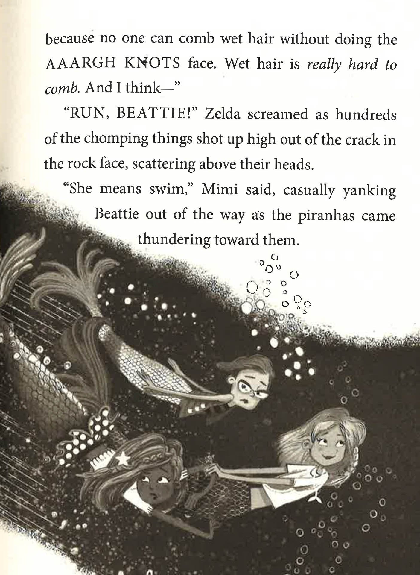 Mermaids Beattie, Mimi, and Zelda's summer on land with temporary legs is going swimmingly - until they receive a strange message ordering them to return home at once. The beloved queen of the Hidden Lagoon has been fishnapped, and some seriously bad mermaids have taken over instead! Now, the girls are the only ones who can stop them.If they're going to save the day, they'll need a clam car, some piranha-print nail polish, and possibly a talking seahorse named Steve. Can they do it?
