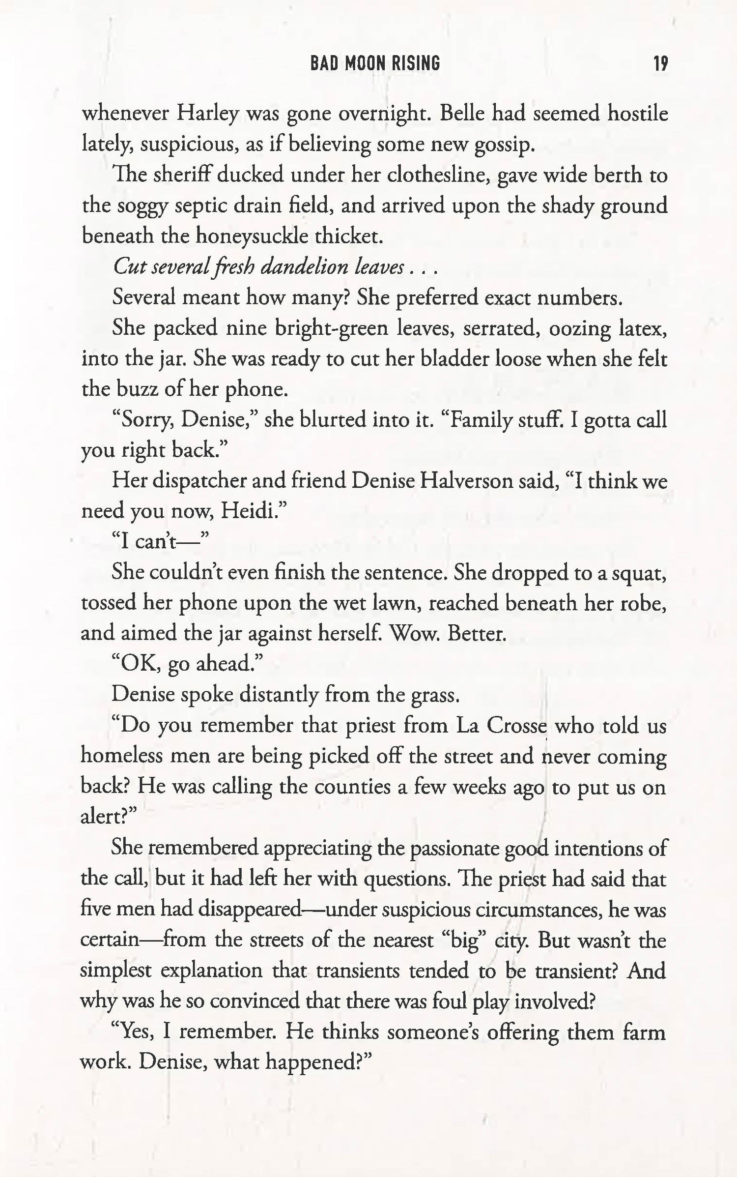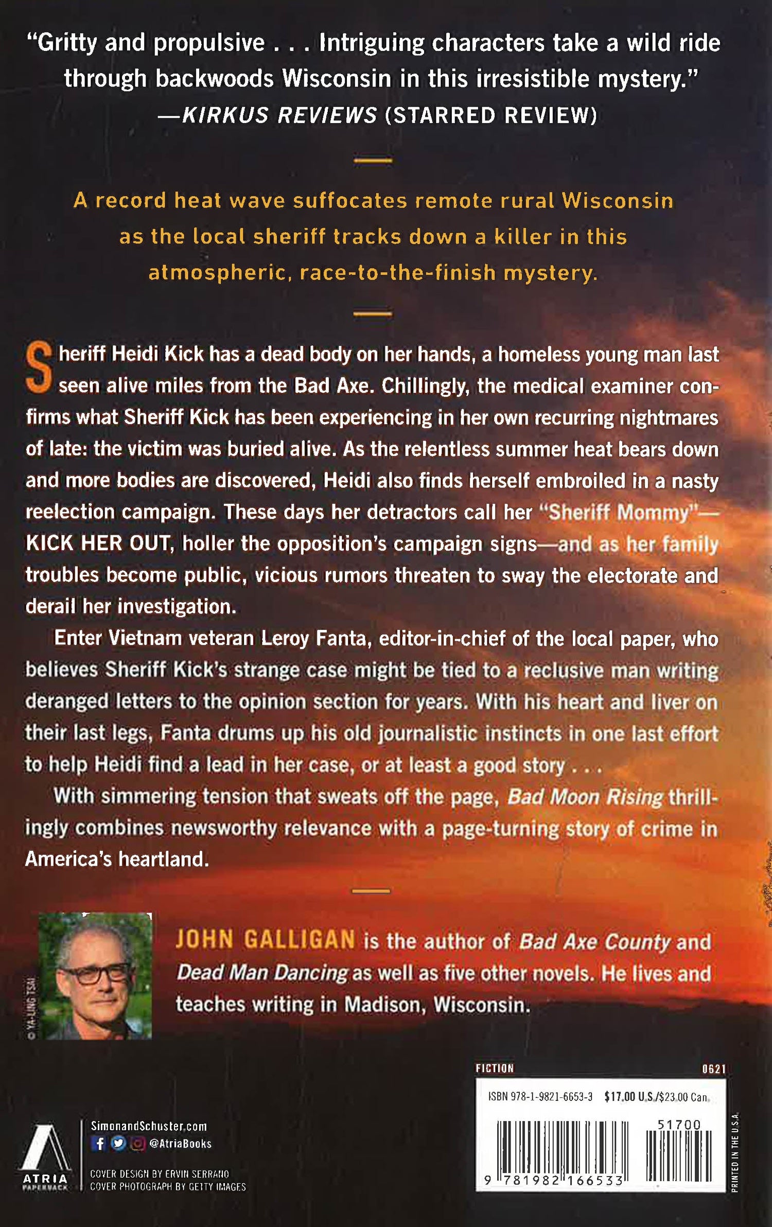 With simmering tension that sweats off the page, Bad Moon Rising infuses newsworthy relevance with a page-turning story of crime in America’s heartland, capturing global issues with startling immediacy while entertaining from start to finish.