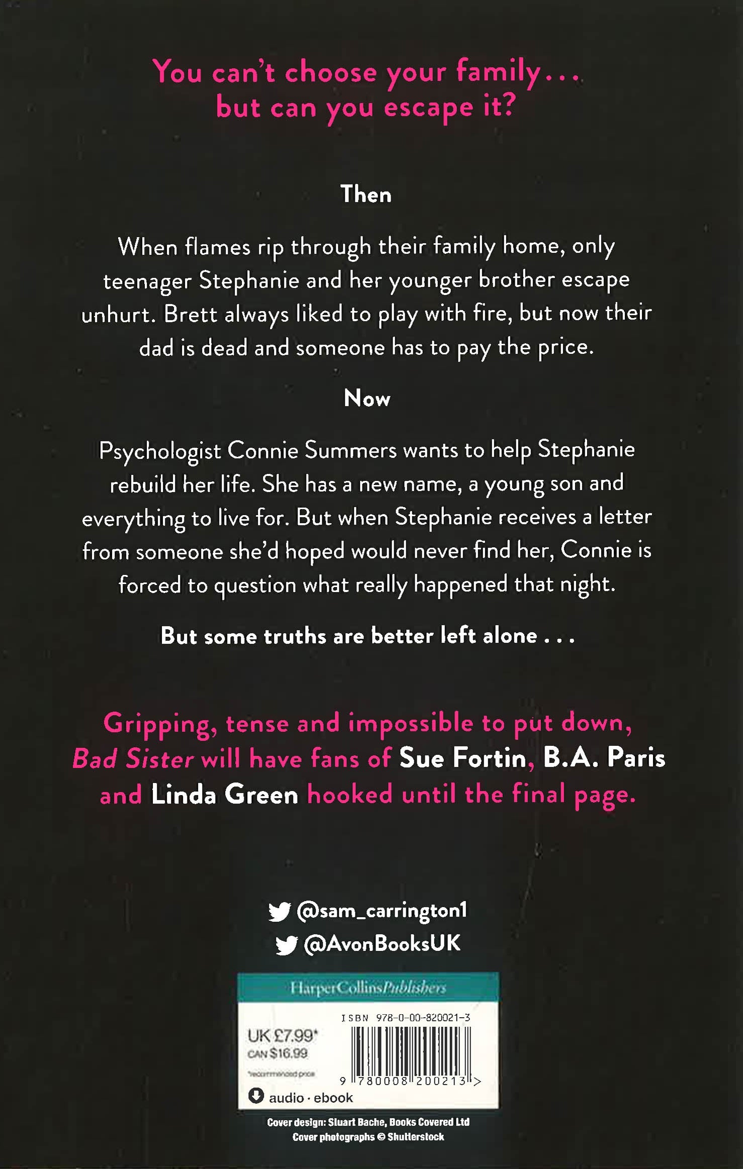 ‘LOVED Bad Sister by Sam Carrington. Tense, convincing and complex, kept me guessing (wrongly!)’ Caz Frear, author of SWEET LITTLE LIES