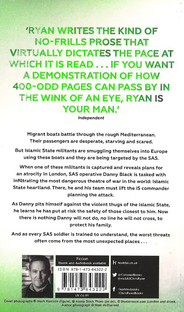 A migrant boat battles through the rough Mediterranean. Its passengers are desperate, starving and scared.They are also being ruthlessly targeted by the SAS.Islamic State militants are smuggling themselves into Europe using these boats. Only by locating such men before they make it into the UK can the Regiment stop them committing their acts of terror on British soil.When one of these migrants reveals plans for a sickening Christmas Day atrocity in London, SAS operative Danny Black is tasked with infiltrating the most dangerous theatre of war in the world: Islamic State heartland. There, he and his team must lift a brutal IS commander - the only man who knows all the details of the London attack. The commander surrounds himself with vicious militants and a harem of sex slaves whom he treats in the most sadistic ways imaginable. And his jihadi wife is, if possible, even more abominable than him.As Danny pits himself against the violent thugs of the Islamic State, he learns that it is not just the UK that is under threat. His very presence on the mission has put at risk the safety of those closest to him. And he discovers that there are greater forces at work here, who do not care if the innocent live or die.Now there is nothing Danny will not do, no line he will not cross, to protect his family. Whether that makes him a good soldier or a bad soldier he neither knows nor cares. Because as he is fast learning, it is sometimes impossible to tell the difference between the two.And as every SAS soldier is trained to understand, the worst threats often come from the most unexpected places...