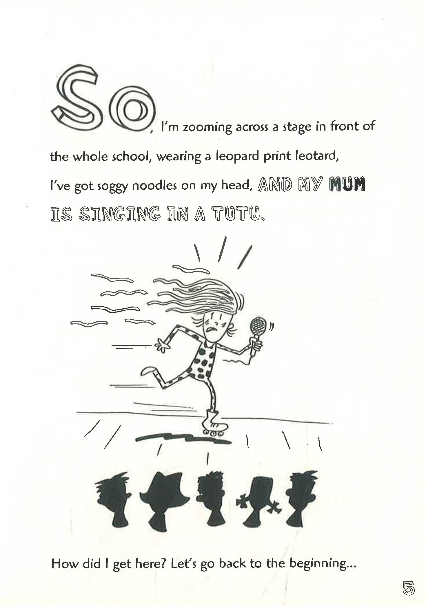 SO I'm stood on a stage in front of the whole school, I've got soggy noodles on my head AND MY MUM IS SINGING IN A TUTU...