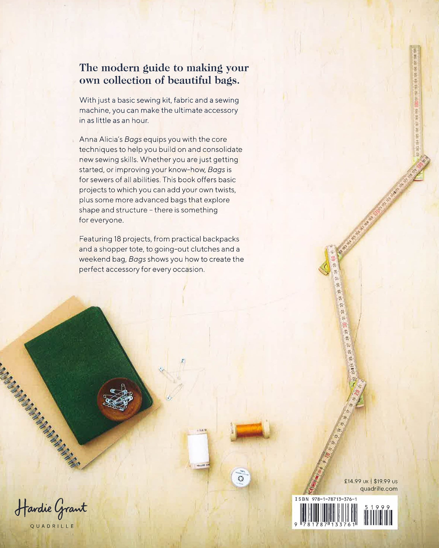 Whether you're a beginner crafter or experienced maker, this book will help you build on your sewing skills as you learn how to make a range of bags from a simple drawstring tote to a stylish colour-block rucksack. As you work your way through the 18 projects, you'll learn how to create interesting shapes (such as a cubed bag or round bucket bag), work with different fabrics (cotton, canvas, linen and more) and discover how to work in zips, poppers, pockets, straps and other add-ons. Step-by-step guidance, plus a wealth of tips and tricks, mean you'll always feel confident in developing your technique, while modern designs and design-focussed details will inspire you to get creative with your makes. Bags is the ideal book for those looking to expand on their sewing skills, create beautiful, lasting additions to their wardrobe or make impressive and covetable gifts for friends and family. The projects include: a simple tote, shopper bag, iPad case, basic big duffel, curved purse, pompom bucket bag, retro backpack, overnight bag, boxy hand-luggage, contract clutch, fold-over backpack, drawstring toiletries bag and many more.