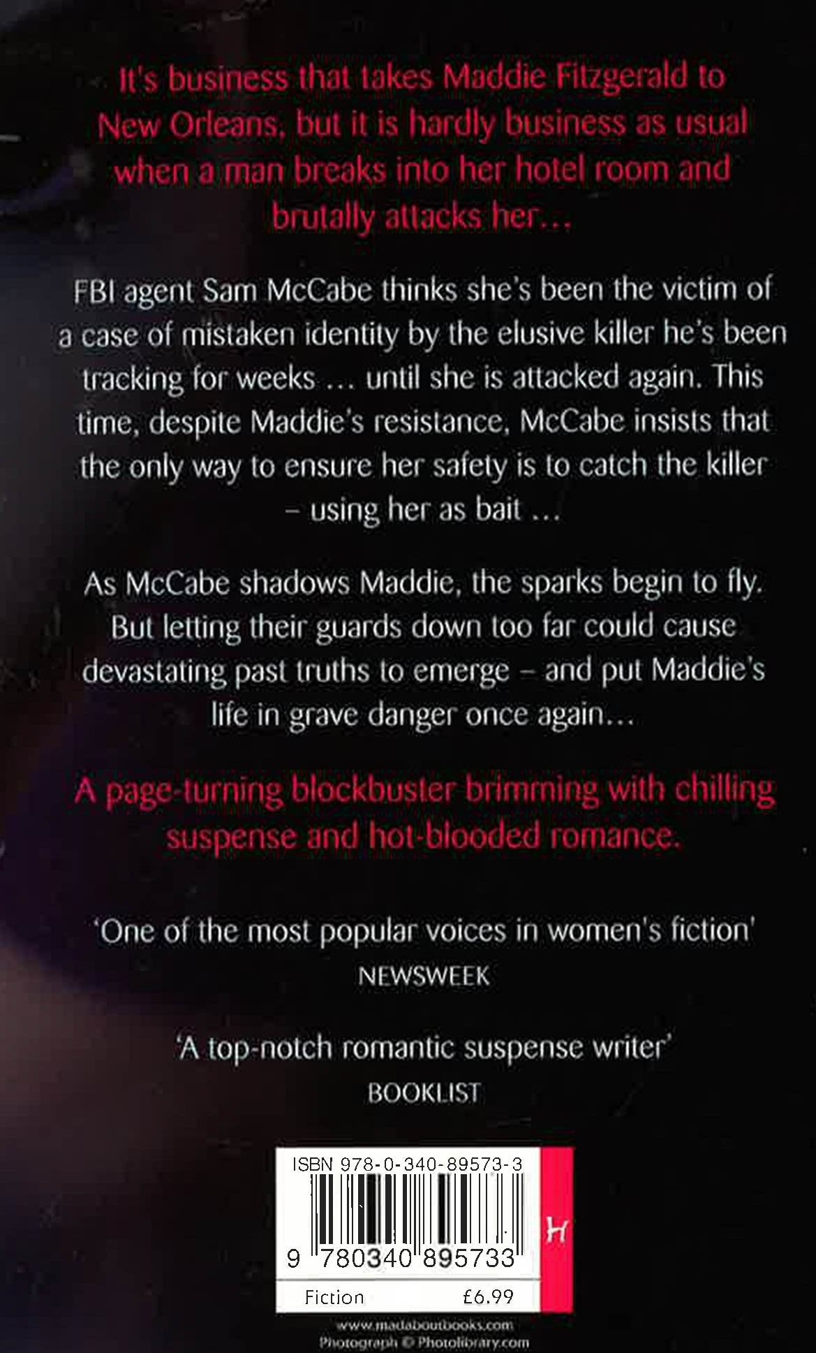It's a business trip that takes advertising agency owner Maddie Fitzgerald to New Orleans, but it is hardly business as usual when a man breaks into her hotel room and tries to kill her. Barely escaping with her life, she soon finds herself face-to-face with FBI agent Sam McCabe. Unnerved by his questions - and his good looks - Maddie is told she's been targeted by an elusive killer whom McCabe has been tracking for weeks. It appears her attack was a case of mistaken identity and a shaken Maddie is given the all-clear to go home.McCabe is ruffled, not just by Maddie's sexiness, but by an inescapable feeling that's she's got something to hide. So when she is attacked for the second time, McCabe insists that the only way to catch the killer is to use her as bait. A sexy, suspenseful new thriller from 'one of the most popular voices in women's fiction' Newsweek