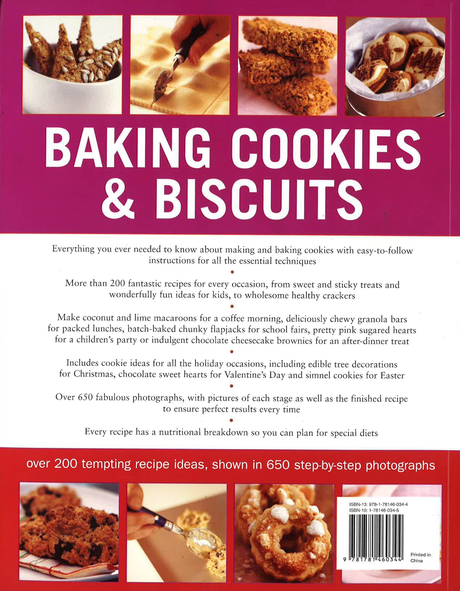 This wonderful, practical cookbook is perfect for everyone who loves cookies. The in-depth introduction covers all the basic techniques, from making different doughs to decorating ideas. Then over 200 classic and modern recipes are divided into tempting chapters on children's party cookies, brownies and bars, indulgent treats, celebration cookies, no-bake cookies, crackers, and even healthier options and recipes for special diets. From Giant Triple Chocolate Cookies to Chinese Fortune Cookies, there is a tantalizing treat for any occasion. Try your hand at classic butter cookies, sweet and funny puppy faces, rich and indulgent praline Pavlova cookies, or quick and simple no-bake white chocolate snowballs. Learn everything you need to know about making, baking, decorating and storing all types of cookies with 650 glorious photographs including easy-to-follow step-by-step instructions for each recipe as well as a picture of the finished cookie. Whether you're an experienced baker or a novice cook, this gorgeous book is a must-have for every kitchen.