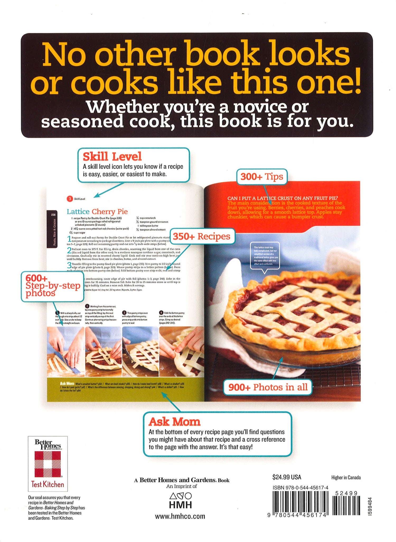 A visual guide to learning to bake, with more than 850 photos Better Homes and Gardens Baking Step by Step is the ultimate guide and idea-generator for anyone who wants to learn to bake or hone their technique. This stunning book uses clear, step-by-step photos--more than 900 of them--to illustrate essential skills from folding batter to forming a lattice pie crust. Home bakers can make 350 classic and modern treats, both sweet and savory. Learn to roll and bake the perfect flaky tart or frost and decorate a celebration-worthy cake--or start simple with Peanut Butter Blondie Bars or Blueberry Crisp; Skill Level icons flag recipes easy, easier, or easiest to make. Complete with an Intro to Baking covering everything from stocking the kitchen to using a rolling pin, this colorful book makes baking fun and accessible for everyone.