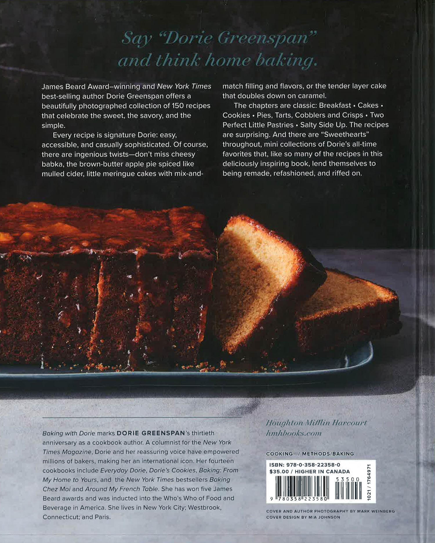 Say “Dorie Greenspan” and think baking. The renowned author of thirteen cookbooks and winner of five James Beard and two IACP awards offers a collection that celebrates the sweet, the savory, and the simple. Every recipe is signature Dorie: easy—beginners can ace every technique in this book—and accessible, made with everyday ingredients. Are there surprises? Of course! You’ll find ingenious twists like Berry Biscuits. Footlong cheese sticks made with cream puff dough. Apple pie with browned butter spiced like warm mulled cider. A s’mores ice cream cake with velvety chocolate sauce, salty peanuts, and toasted marshmallows. It’s a book of simple yet sophisticated baking. The chapters are classic: Breakfast Stuff • Cakes • Cookies • Pies, Tarts, Cobblers and Crisps • Two Perfect Little Pastries • Salty Side Up. The recipes are unexpected. And there are “Sweethearts” throughout, mini collections of Dorie’s all-time favorites. Don’t miss the meringue Little Marvels or the Double-Decker Caramel Cake. Like all of Dorie’s recipes, they lend themselves to being remade, refashioned, and riffed on.