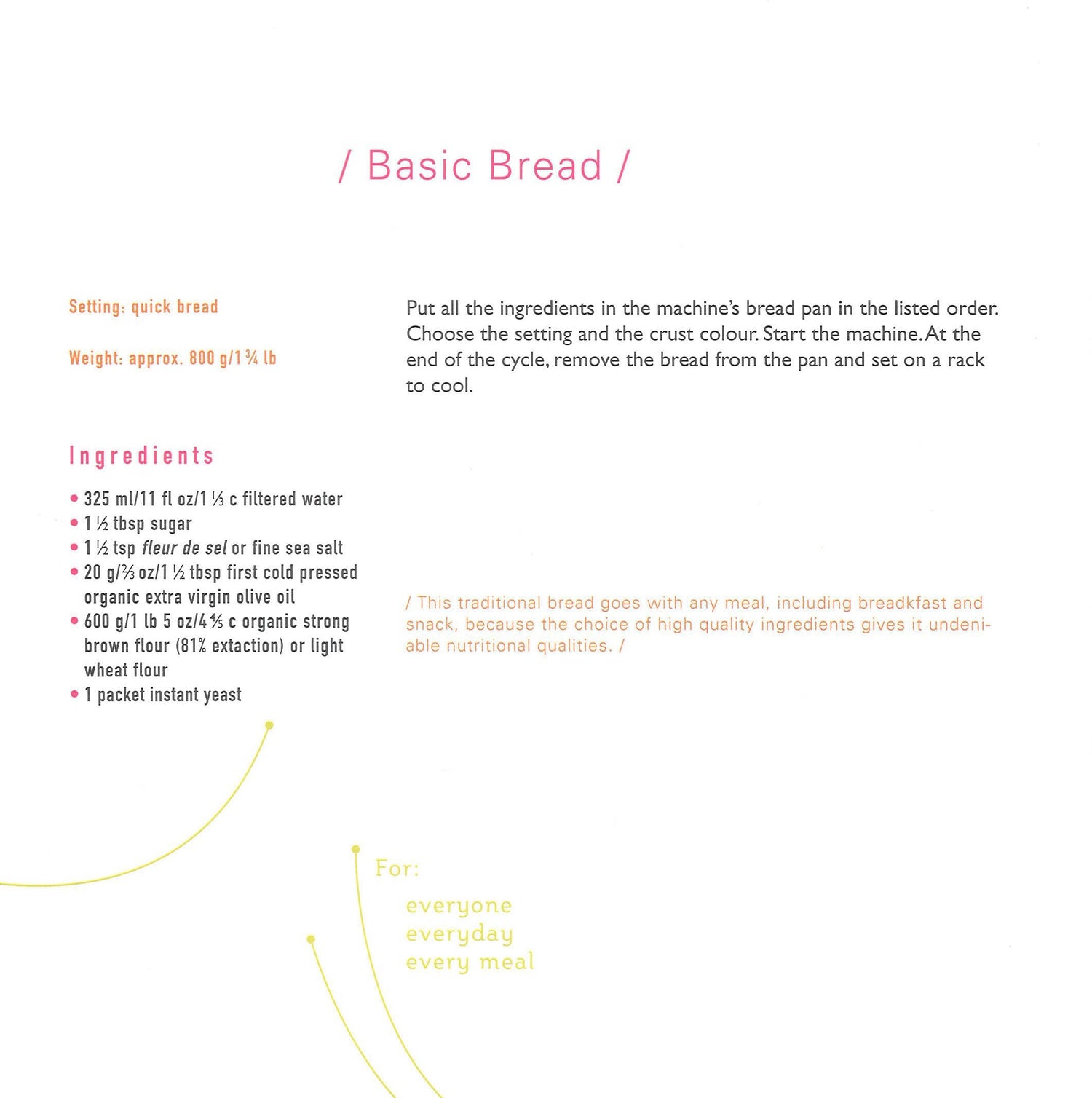Bread is an important staple in a balanced diet, both for adults and for children. We should encourage eating bread, unlike other processed foods that are for a large part responsible for the child obesity that is ravaging our societies. This book introduces you to an entire range of dietetic breads you can make by yourself, or with your children, using your bread machine. Each recipe includes: - precise information about the dietetic aspects of the bread, - nutritional information about the ingredients used, - health problems that each type of bread could help to resolve, - who will most appreciate the bread (children, pregnant women, people with heart trouble, etc), - advice for presenting the bread and tasting it at the right time. In addition to being good for you, these breads are tasty and original (fig-walnut, coconut-almond, soy-orange, etc.), which is all the better.
