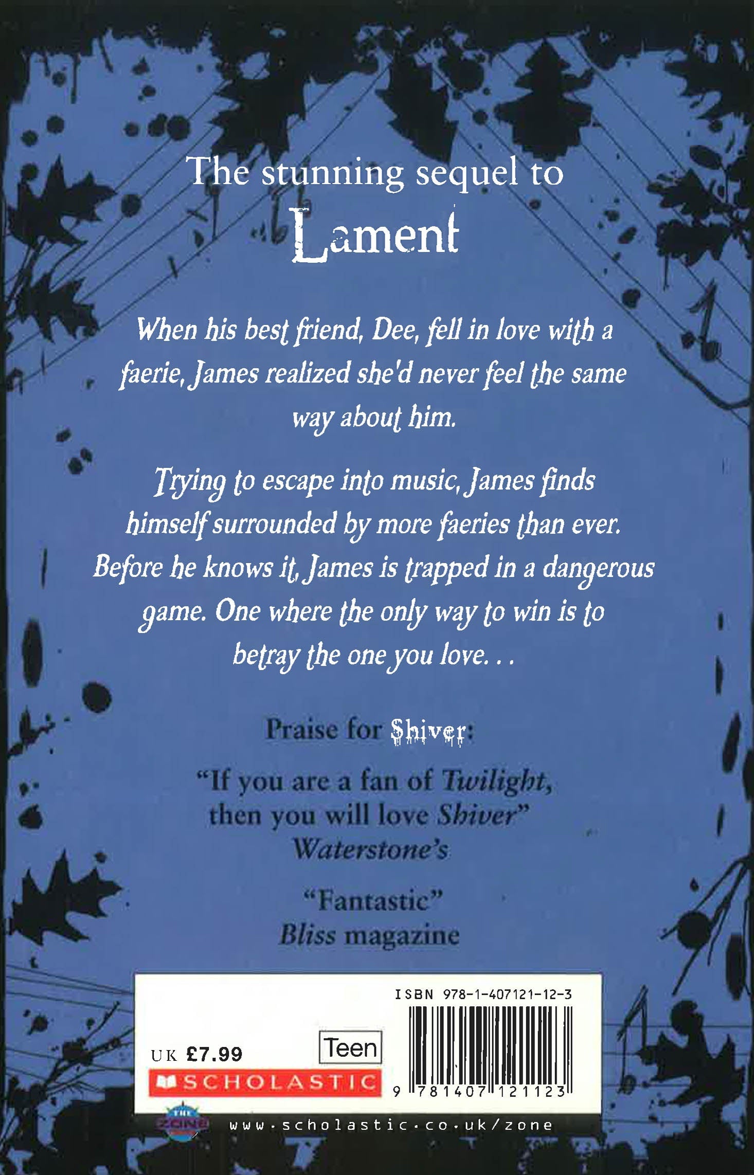In this sequel to "Lament", faeries follow James and Dee to Thornking-Ash boarding school, where James struggles with his feelings for Dee and for a dangerous faerie muse called Nuala. When Halloween plunges both Dee and Nuala into danger, James finds he can only save one. Another creepy, beautiful fantasy set in the vicious world of faerie