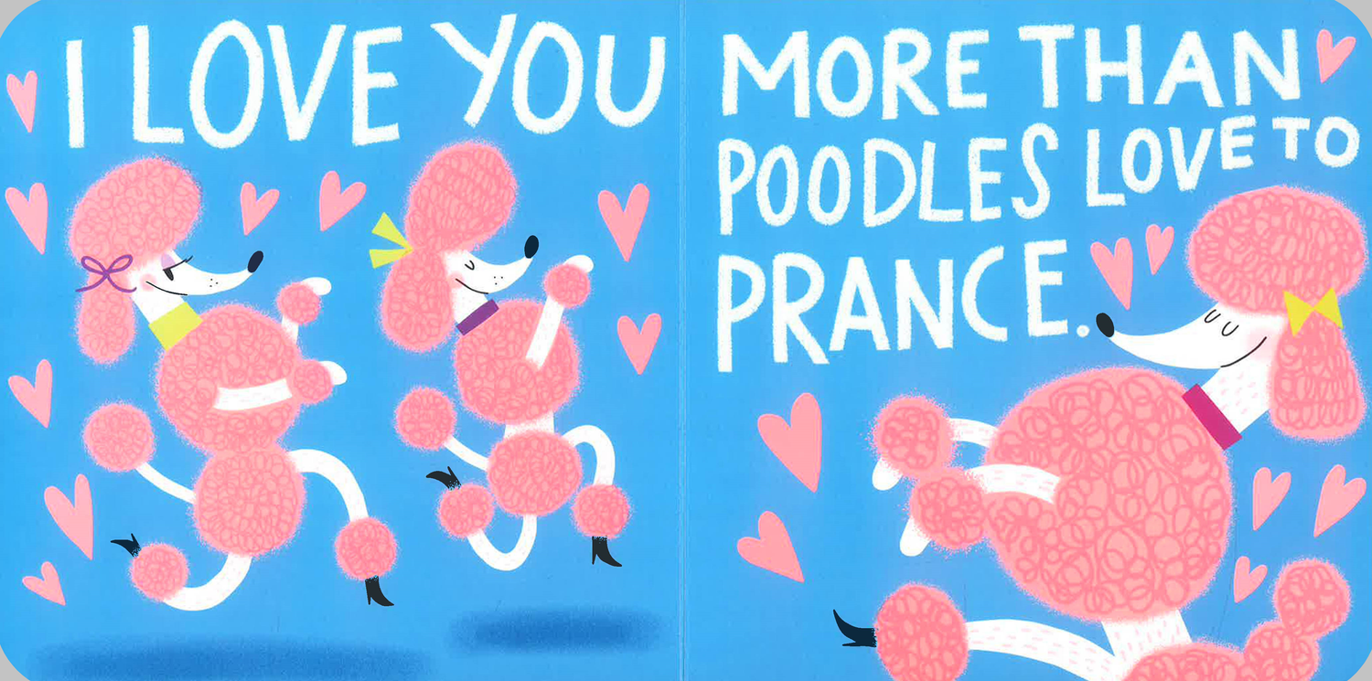Do you love someone more than chickens love to dance? More than poodles love to prance? Perfect for Valentine’s Day or any time that calls for a little extra celebrating, this book, from bestselling creators Hello!Lucky, is full of eye-catching illustrations, pun-derful humor, and an extra dose of silliness sure to make little ones giggle with every page.