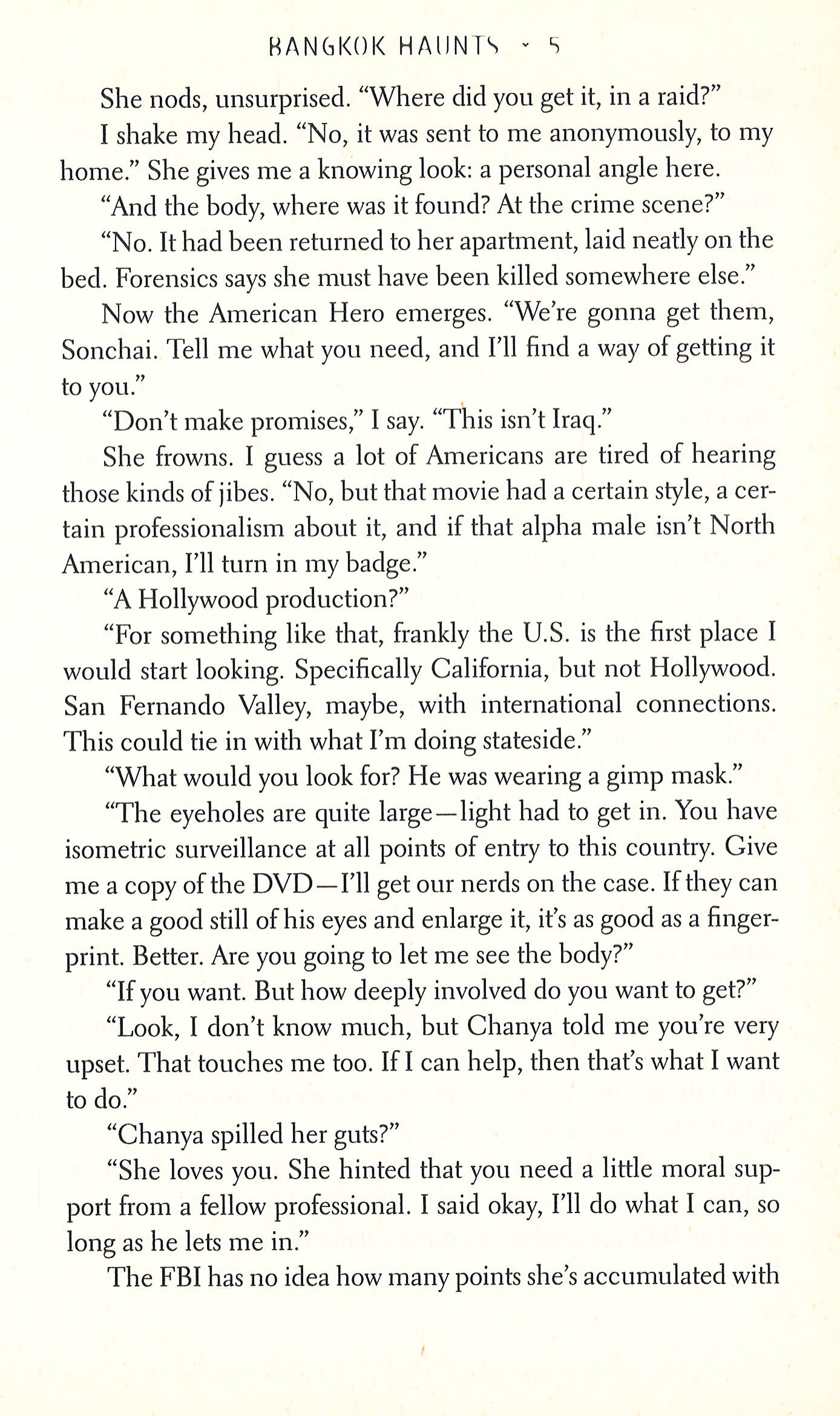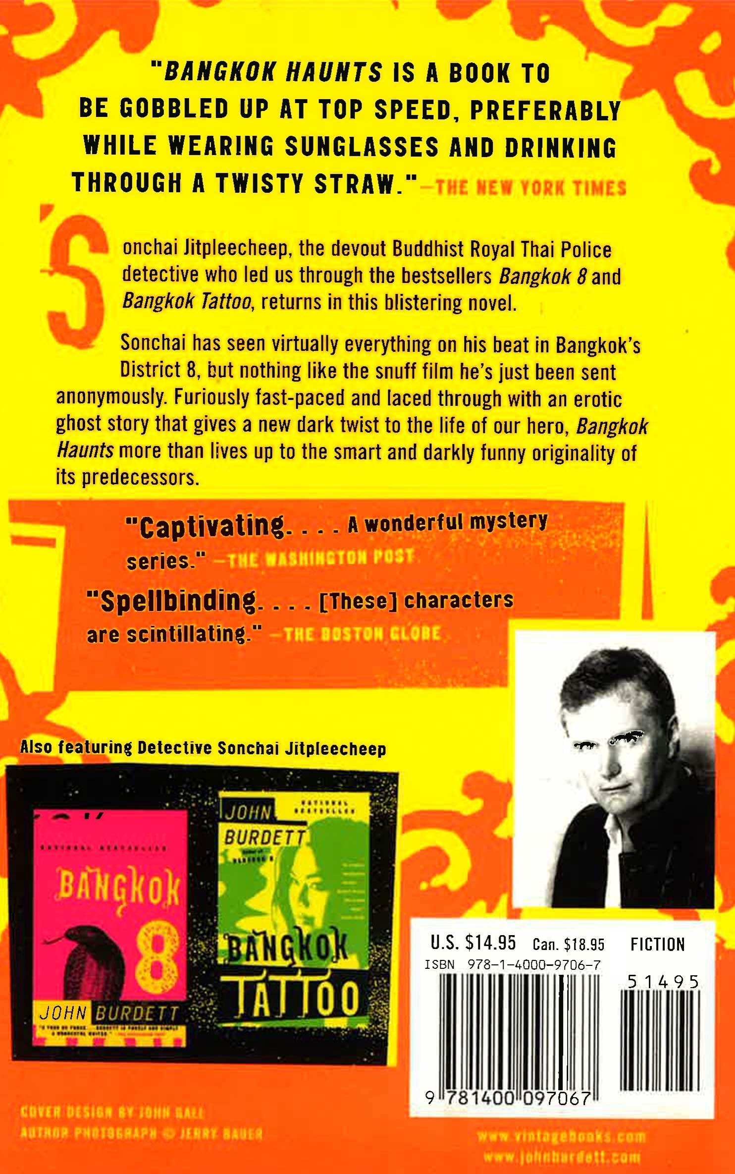 Sonchai Jitpleecheep, the devout Buddhist Royal Thai Police detective who led us through the best sellers Bangkok 8 and Bangkok Tattoo, returns in this blistering novel. Sonchai has seen virtually everything on his beat in Bangkok's District 8, but nothing like the snuff film he's just been sent anonymously. Furiously fast-paced and laced through with an erotic ghost story that gives a new dark twist to the life of our hero, Bangkok Haunts more than lives up to the smart and darkly funny originality of its predecessors.