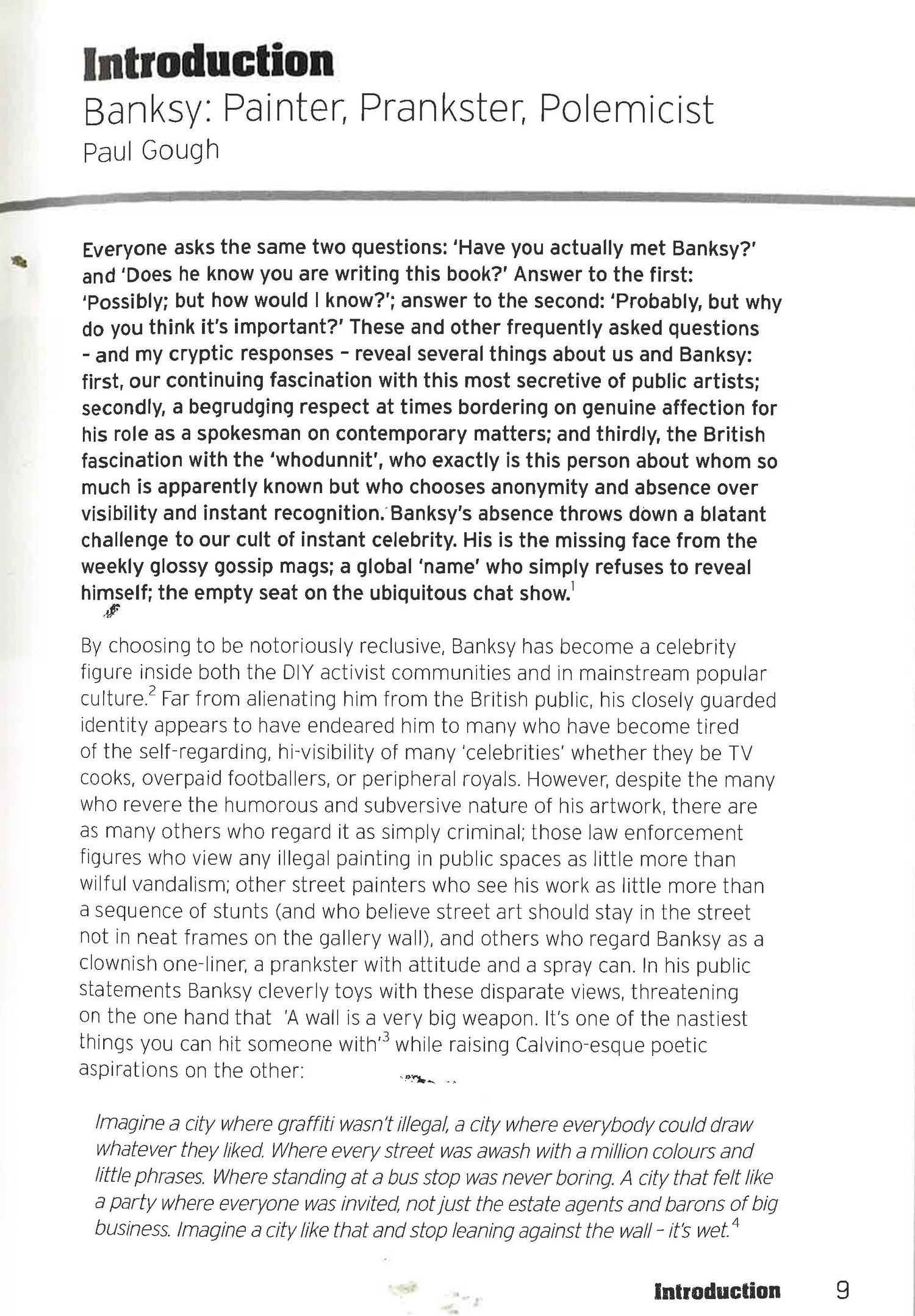 In the summer of 2009 Bristol saw a remarkable phenomenon that made international news. An estimated 300,000 people queued for hours, often in pouring rain, for admission to the city's museum & art gallery. They had been attracted by the media hype surrounding an exhibition ambiguously entitled 'Banksy vs the Bristol Museum'. There have been many celebratory books about Banksy, but this is the first non-partisan documentation of the Bristol event and an attempt to assess its local and wider impact. ..The book raises a raft of questions: Is Banksy a subversive influence or merely a bit of fun? Why is Banksy so important to Bristol? Is he really important? Where does the exhibition leave Bristol as an epicentre of 'street art'? It looks at the setting up of the show and questions the need - other than to conform to the required Banksy mystique - for secrecy.