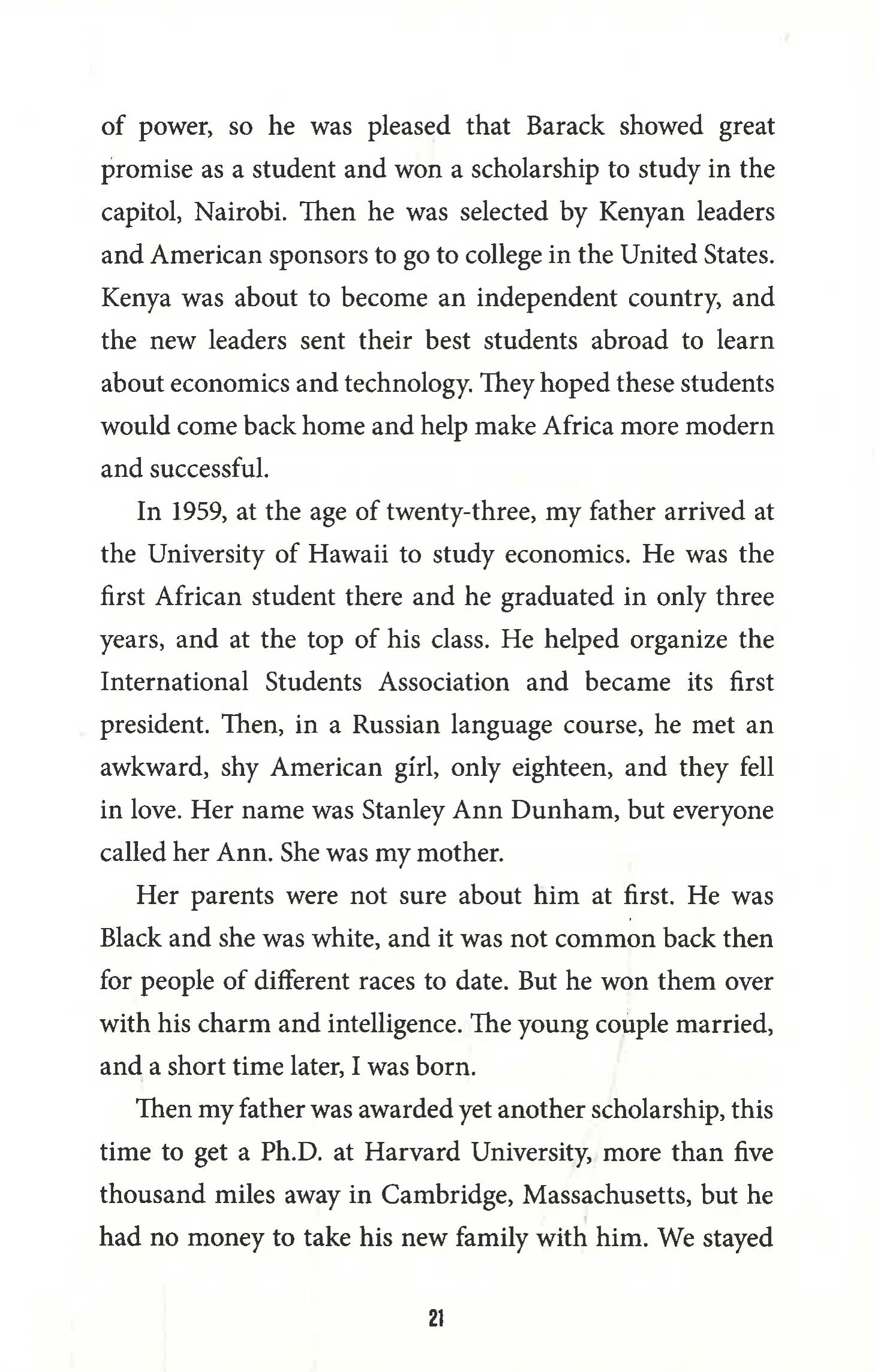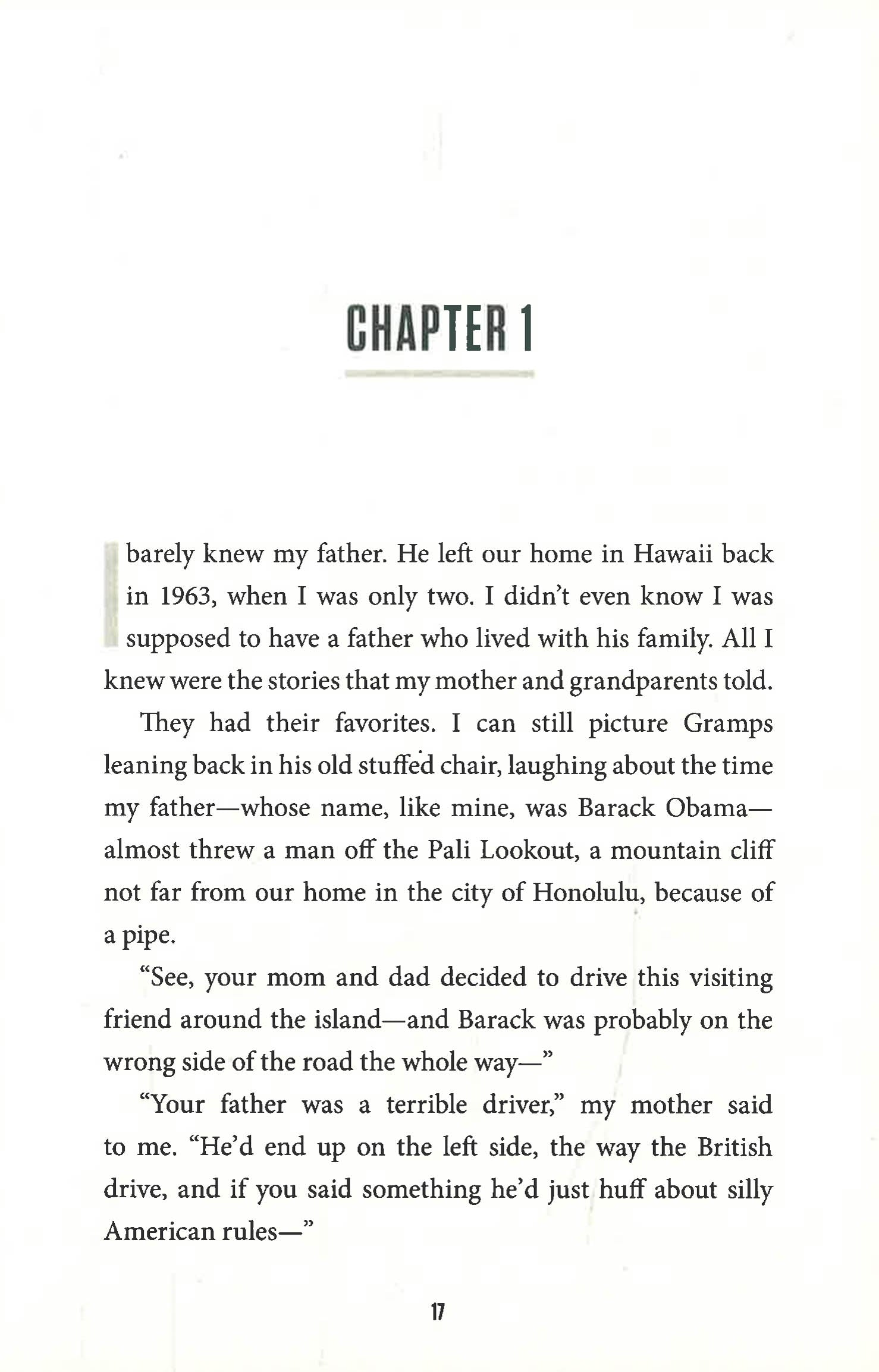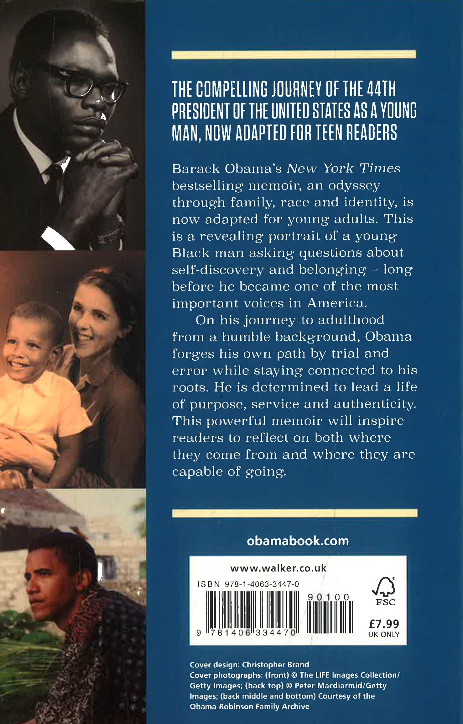 Barack Obama brings readers along as he faces the challenges of high school and college, living in New York, becoming a community organizer in Chicago and travelling to Kenya. On his journey to adulthood from a humble background, he forges his own path by trial and error while staying connected to his roots, determined to lead a life of purpose, service and authenticity. Obama's powerful and enduring memoir has been skilfully abridged to make it accessible and engaging for young readers, giving them the opportunity to reflect on where they have come from - and where they are capable of going.