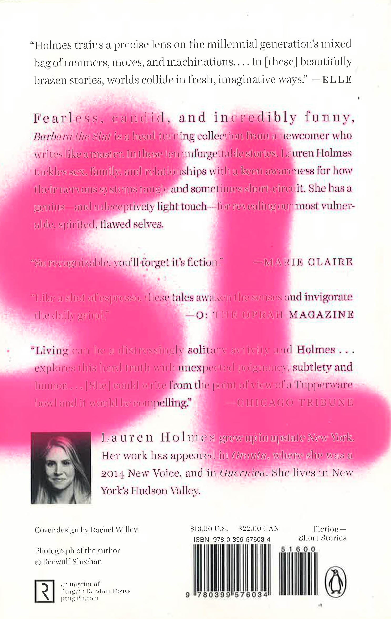 "Holmes trains a precise lens on the millennial generation's mixed bag of manners, mores, and machinations... In [these] beautifully brazen stories, worlds collide in fresh, imaginative ways." --Elle A fresh, honest, and darkly funny debut collection about family, friends, and lovers, and the flaws that make us most human. Fearless, candid, and incredibly funny, Lauren Holmes is a newcomer who writes like a master. She tackles eros and intimacy with a deceptively light touch, a keen awareness of how their nervous systems tangle and sometimes short-circuit, and a genius for revealing our most vulnerable, spirited selves. In "Desert Hearts," a woman takes a job selling sex toys in San Francisco rather than embark on the law career she pursued only for the sake of her father. In "Pearl and the Swiss Guy Fall in Love," a woman realizes she much prefers the company of her pit bull--and herself--to the neurotic foreign fling who won't decamp from her apartment. In "How Am I Supposed to Talk to You?" a daughter hauls a suitcase of lingerie to Mexico for her flighty, estranged mother to resell there, wondering whether her personal mission--to come out--is worth the same effort. And in "Barbara the Slut," a young woman with an autistic brother, a Princeton acceptance letter, and a love of sex navigates her high school's toxic, slut-shaming culture with open eyes. With heart, sass, and pitch-perfect characters, Barbara the Slut is a head-turning debut from a writer with a limitless career before her.