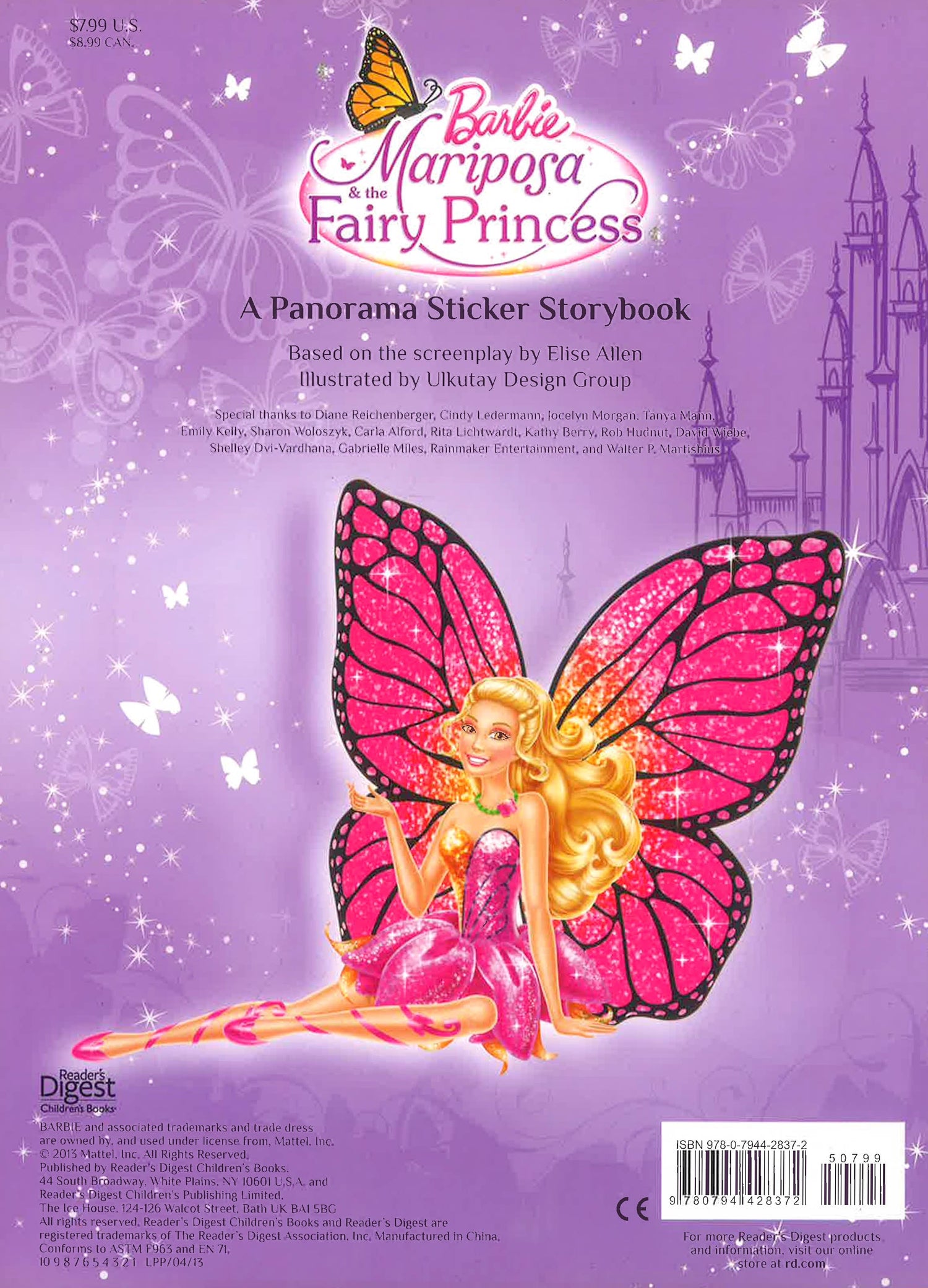 Based on the latest direct to video Barbie movie, this panorama stickerbook encourages girls to read the story and then re-create the tale with reusable stickers and a two-sided play board. It's an all-new Flutterfield adventure with Mariposa and her fairy friends in this delightful sequel to Mariposa A Butterfly Fairy. Come along with Mariposa and new friends on a magical journey to an enchanted world where they meet the Chrystal Fairy princess! Kids can read the story and then renact the scenes with the 2 reusable sticker sheets and 4 panorama playscenes.