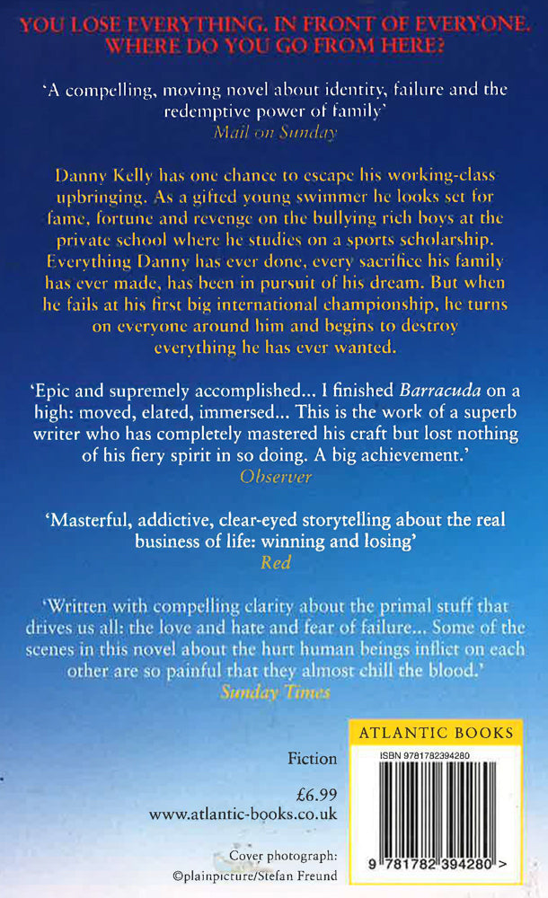 Daniel Kelly, a talented young swimmer, has one chance to escape his working-class upbringing. His astonishing ability in the pool should drive him to fame and fortune, as well as his revenge on the rich boys at the private school to which he has won a sports scholarship. Everything Danny has ever done, every sacrifice his family has ever made, has been in pursuit of his dream. But when he melts down at his first big international championship and comes only fifth, he begins to destroy everything he has fought for and turn on everyone around him. Tender and savage, Barracuda is a novel about dreams and disillusionment, friendship and family. As Daniel Kelly loses everything, he learns what it means to be a good person - and what it takes to become one.