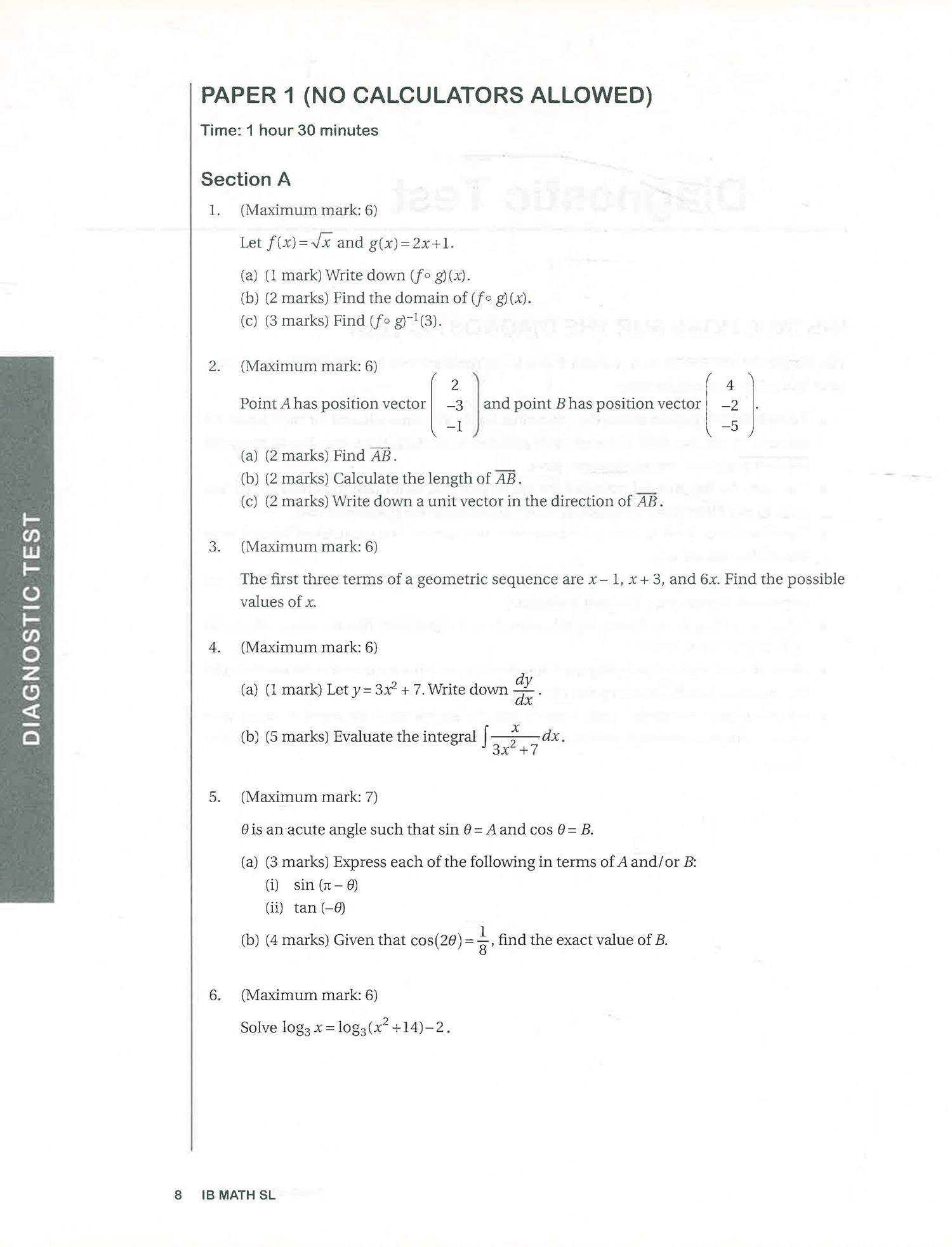 A full-length diagnostic test with markscheme and fully explained answers