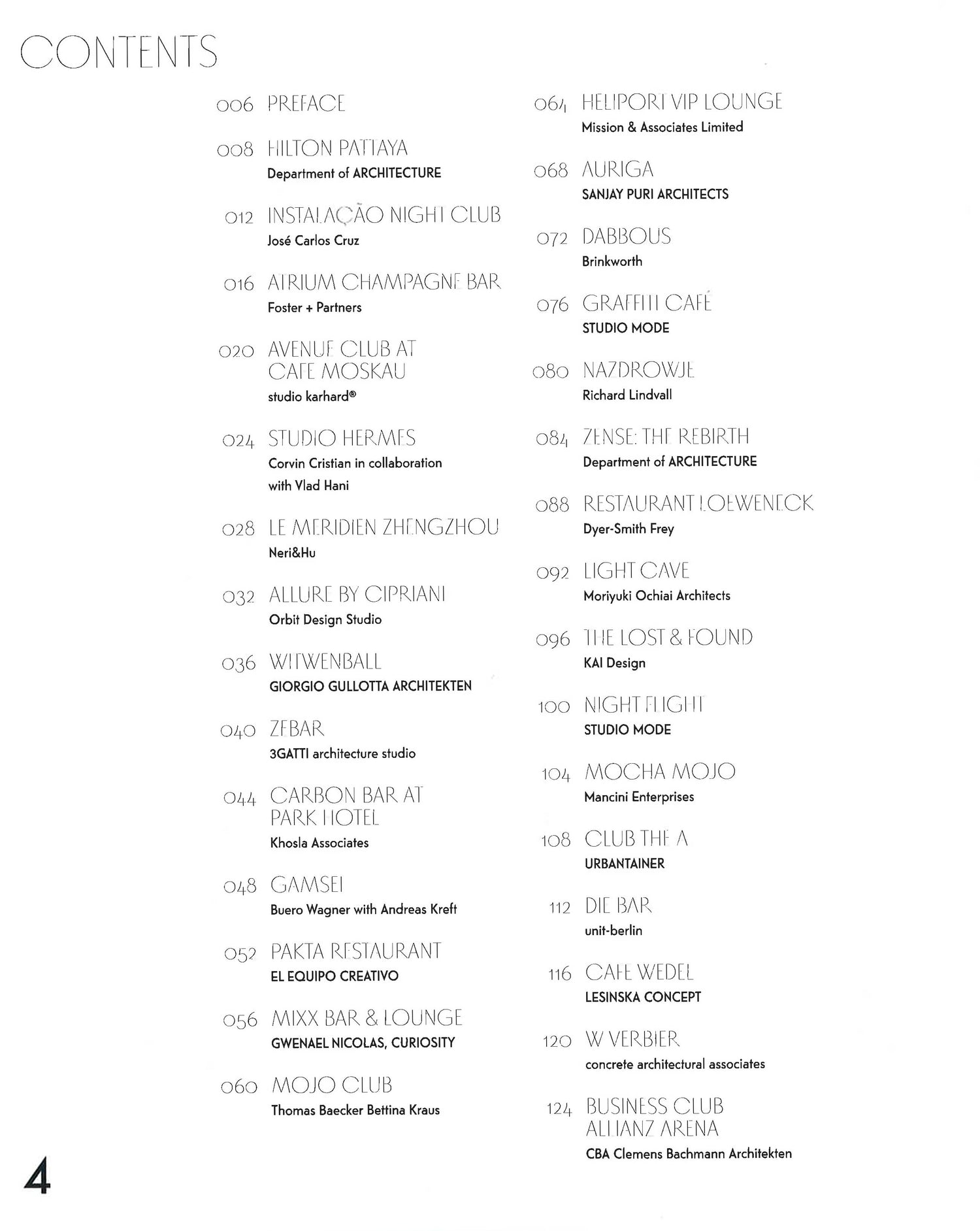 Exclusive cocktails at a bar, excessive partying at a club, or relaxed chilling at a lounge - people need to occasion - ally escape from their everyday life into another world. This is made possible by the individual character and the very own atmosphere of each special location, which are strongly defined by architectural and design visions. Apart from the drinks, the music and the people, lighting and space, form and furnishing are decisive success factors for all good concepts. Nowhere else can a de - signed space have such a strong effect and impact. While the range of styles has grown enormously recently, this field has become one of the most exciting tasks for interior designers. This volume takes the reader on a tour of very remarkable bars, clubs and lounges from around the world.