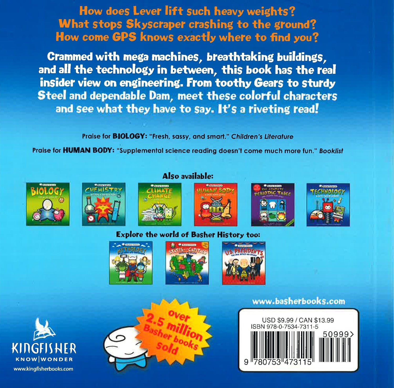 How does a 3D printer work? What stops a skyscraper from falling over? Where does a smart phone store information?Welcome to the world of engineering! Discover how the familiar machines and buildings in today's world are constructed, and how they function. How do scientists choose the right materials for the right job? Which scientific principles lie behind each machine or structure?Basher's highly original books explain difficult scientific concepts in ingenious ways, making them tangible, understandable and even lovable. Chatty first-person text and stylish, contemporary character illustrations give a voice, personality, and story to each topic -- it's a truly brilliant way to communicate science.