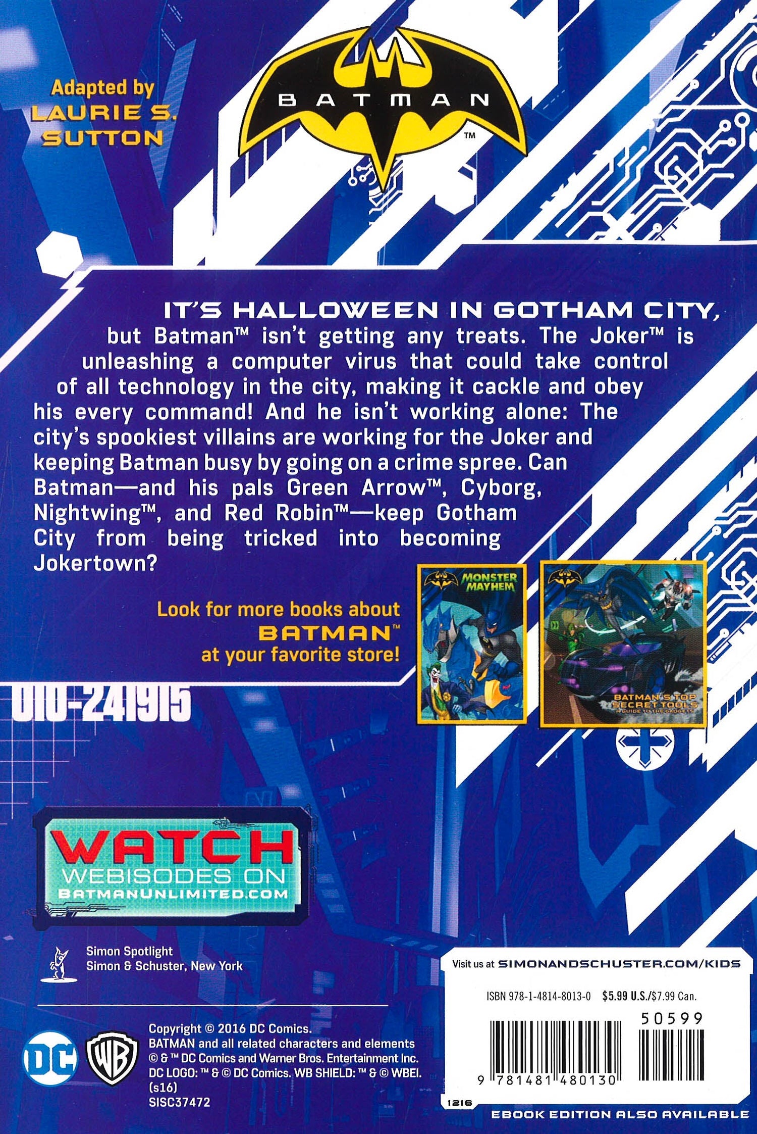 Gotham City’s spookiest villains are working together, and only Batman and his superhero friends can stop them in this action-packed chapter book retelling of the Monster Mayhem Batman animated film with full-color illustrations throughout. It’s Halloween night in Gotham City, but Batman isn’t getting any treats. A crime spree has Batman on the trail of the city’s spookiest villains: Scarecrow, Clayface, Silver Banshee, and Solomon Grundy. They are all working for the Joker, who wants to unleash a computer virus and “digital laughter” that will give him control over all of Gotham City’s technology! Joining forces with the Green Arrow, Cyborg, Nightwing, and Red Robin, can Batman save Gotham City? Find out in this thrilling chapter book with full-color interior illustrations!