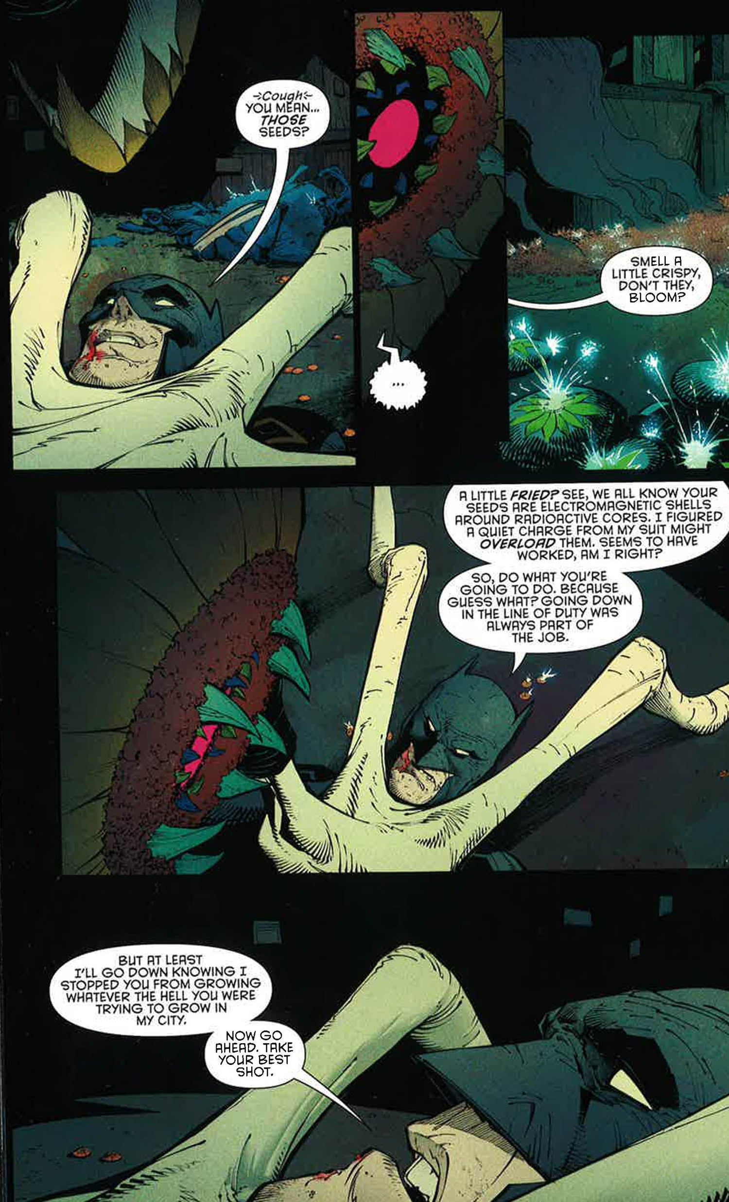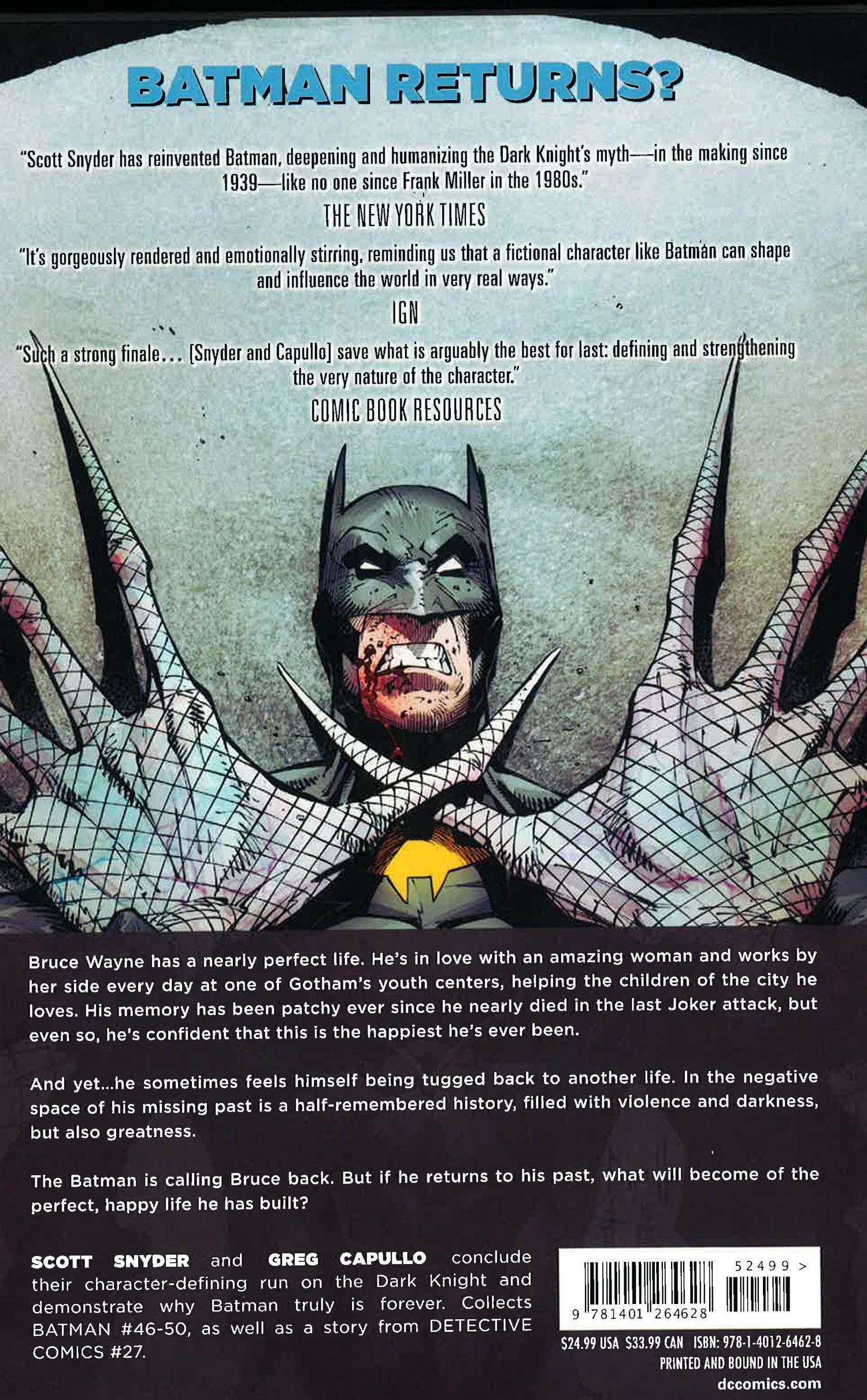 As the new Batman, former police commissioner Jim Gordon is in for the fight of his life against the bizarre threat of Mr. Bloom, who controls plant life in Gotham City! At the same time, an amnesiac Bruce Wayne has discovered the truth of his past as the Dark Knight -- now, he must descend into the Batcave and reclaim that painful legacy. With Bruce back in the cape and cowl once more, can the combined skills of two Batmen defeat Mr. Bloom and his minions? The penultimate chapter to Scott Snyder and Greg Capullo's epic#1 NEW YORK TIMES bestselling series is here in BATMAN VOL. 9. Collects issues#47-50.