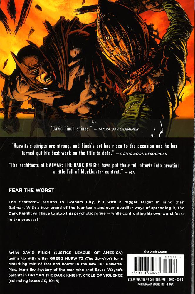 The Scarecrow has returned to Gotham City, but he's no longer the meek punching bag Batman is used to. The villainous genius has always preyed on the worst fears of his victims, but has refined his legendary fear toxin to even greater effectiveness and deadlier consequences. As the Scarecrow's origin is unfurled, Batman must find out not only how to conquer this dangerous psychopath but how to beat his own fear.
