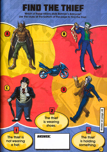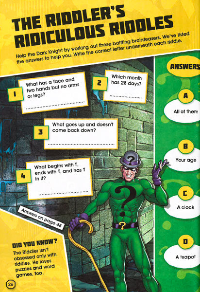 Join Batman and his trusty sidekick Robin as they battle against evil in this awesome Dark Knight Activities book. Unscramble the names of Batman's fiercest foes, make your own bat-jigsaw, complete the cool comic strips, and lots more! This book is action-packed with over 40 activities to complete.