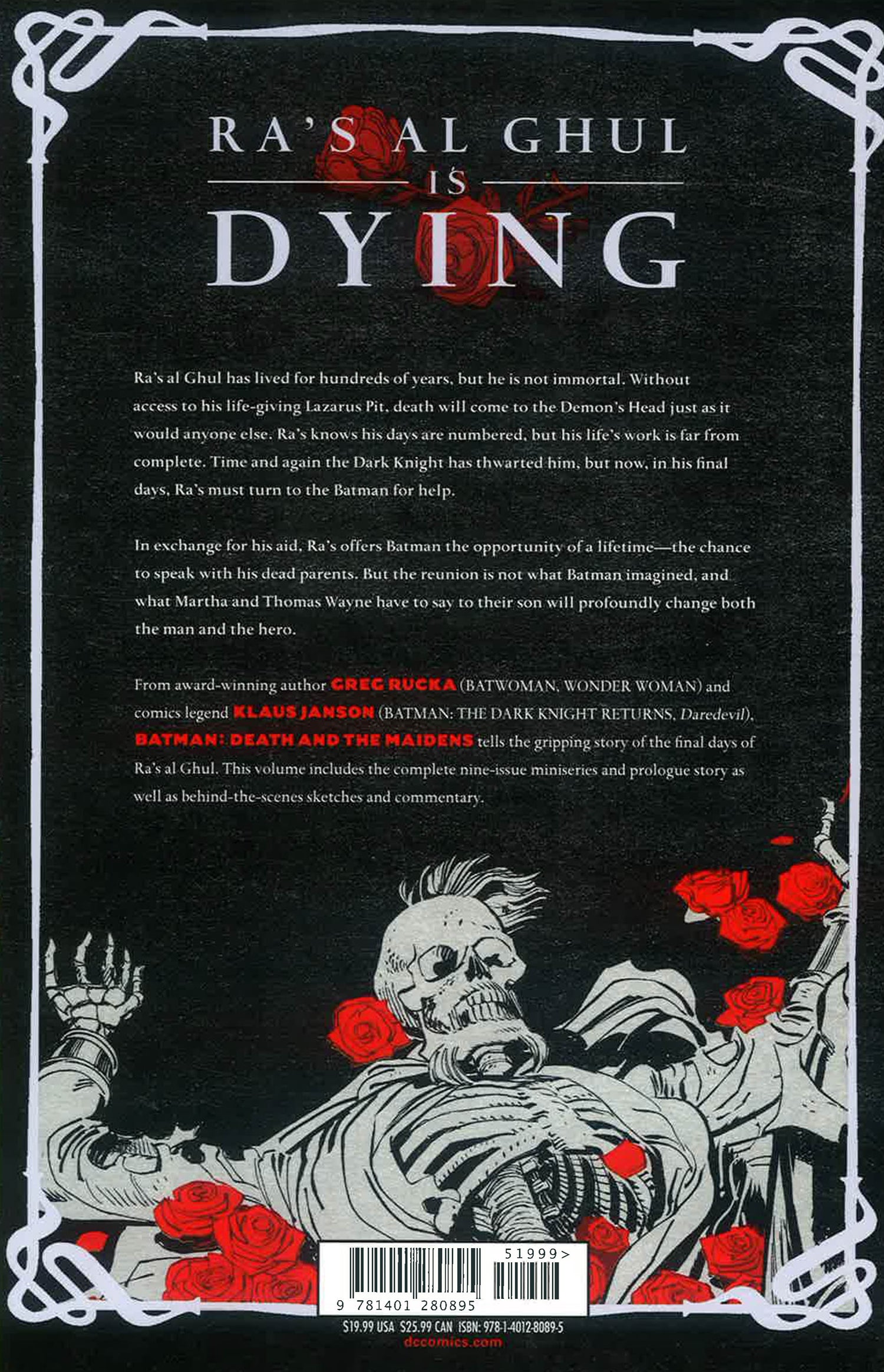 Batwoman, Wonder Woman) and comics legend Klaus Janson (Batman: The Dark Knight Returns, Daredevil), Batman: Death & the Maidens tells the gripping story of the final days of Ra's al Ghul. This volume includes the complete nine-issue miniseries and prologue story as well as behind-the-scenes sketches and commentary.