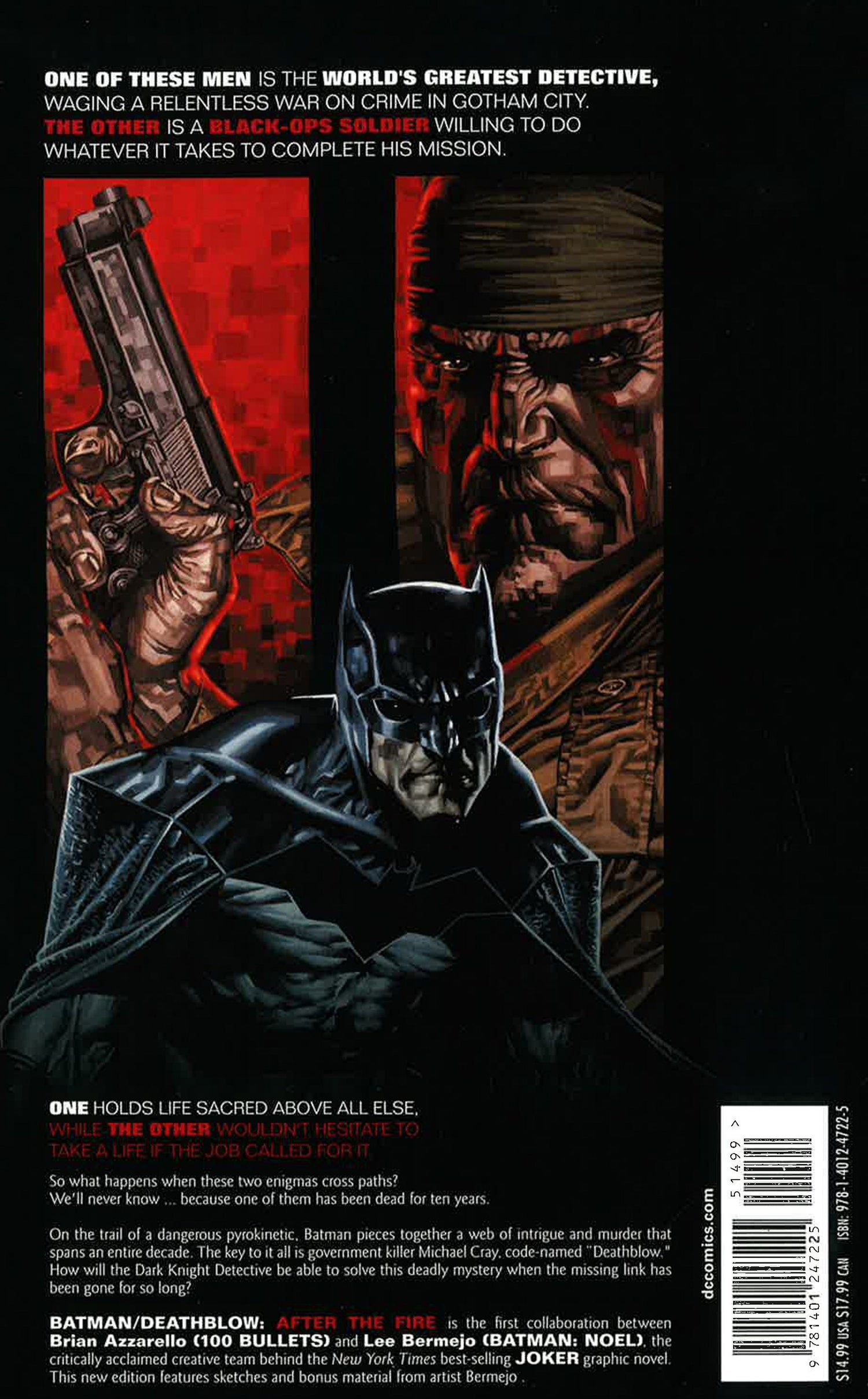 One is the World's Greatest Detective with unlimited resources for his vigilante quest for justice. The other is a soldier; a black-ops killer who does whatever it takes for the greater good. What happens when the two meet? We'll never know because Michael Cray, code-name Deathblow, is dead! The Dark Knight faces the daunting task of finishing a job that someone else started, but for reasons that remain a mystery, refused to finish. That someone was Michael Cray.
