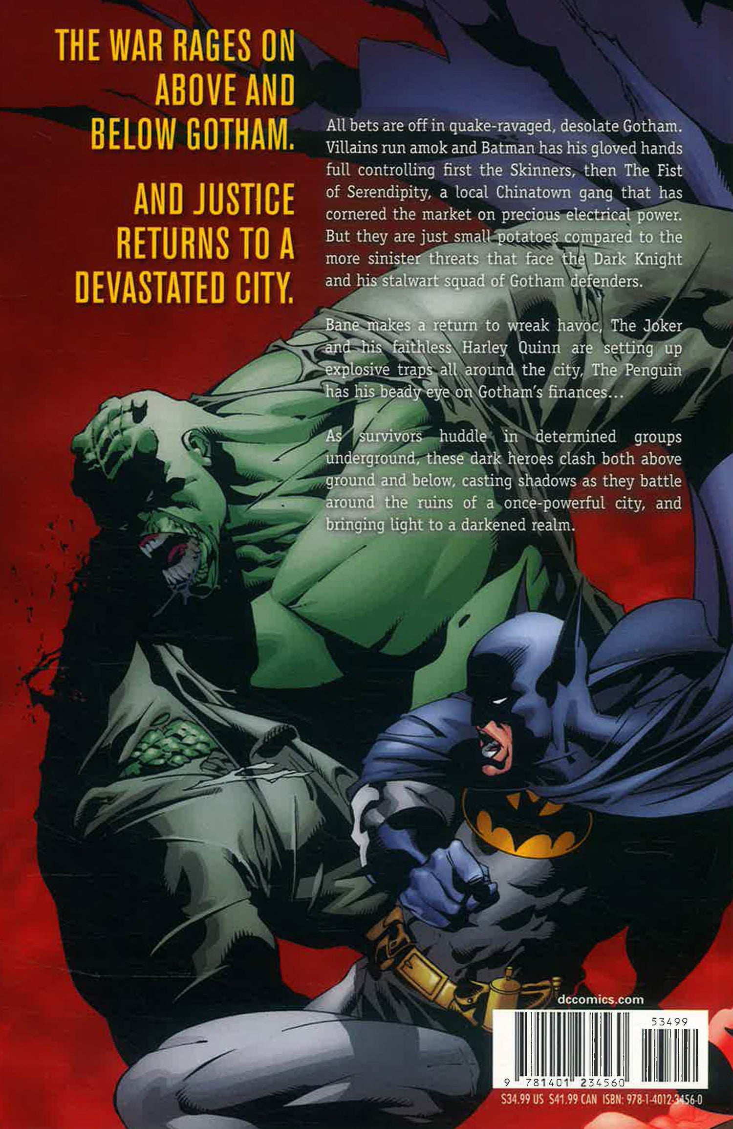 Batman and his allies continue their fight to save Gotham during its darkest hour. Taking on a new costume and persona as Batgirl, the Huntress joins forces with Barbara Gordon, the former Batgirl, while Nightwing, the former Robin, tries to help the city's remaining citizens in any way he can. But as Batman begins to realize that he is fighting a fight he can't win, he collapses into a state of despair from which he may never recover.
