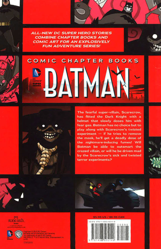 The Scarecrow is on the loose in this exciting comics and chapter book hybrid! Now the Scarecrow has fitted the Dark Knight with a helmet that slowly gives him fear gas as part of a twisted experiment. Batman has no choice but to play along - the mask is tamper-proof and if he tries to remove it, he'll get a toxic dose of the nightmare-inducing fumes! Will Batman outsmart the crazed villain, or will he be driven bat-bonkers?