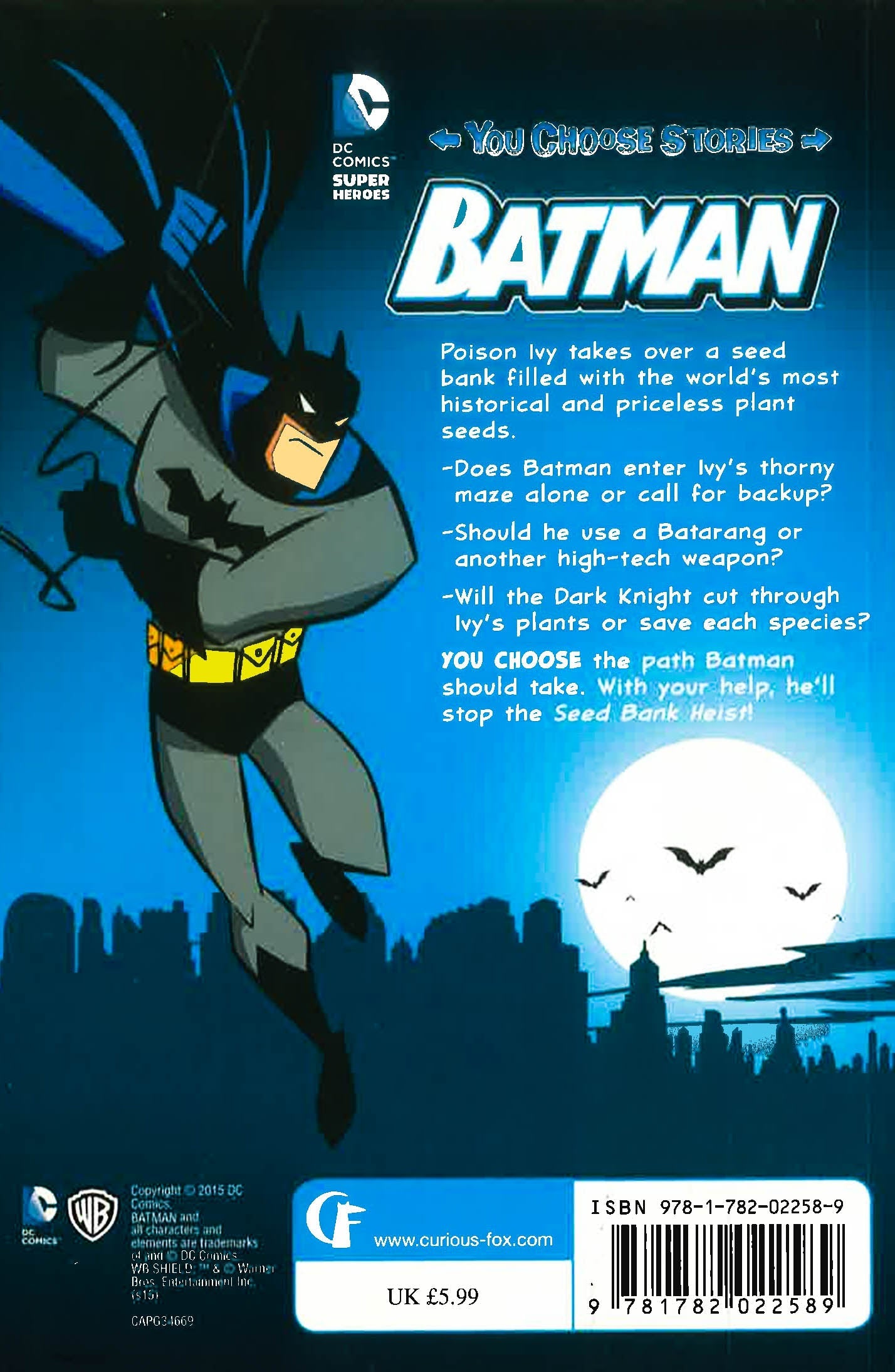 Poison Ivy takes over a seed bank filled with the world's most historical and priceless plant seeds. Does Batman enter Ivy's thorny maze alone or call for backup? Should he use a Batarang or another high-tech weapon? Will the Dark Knight cut through Ivy's plants or save each species? In this interactive story, You Choose the path Batman should take. With your help, hell stop the Seed Bank Heist!