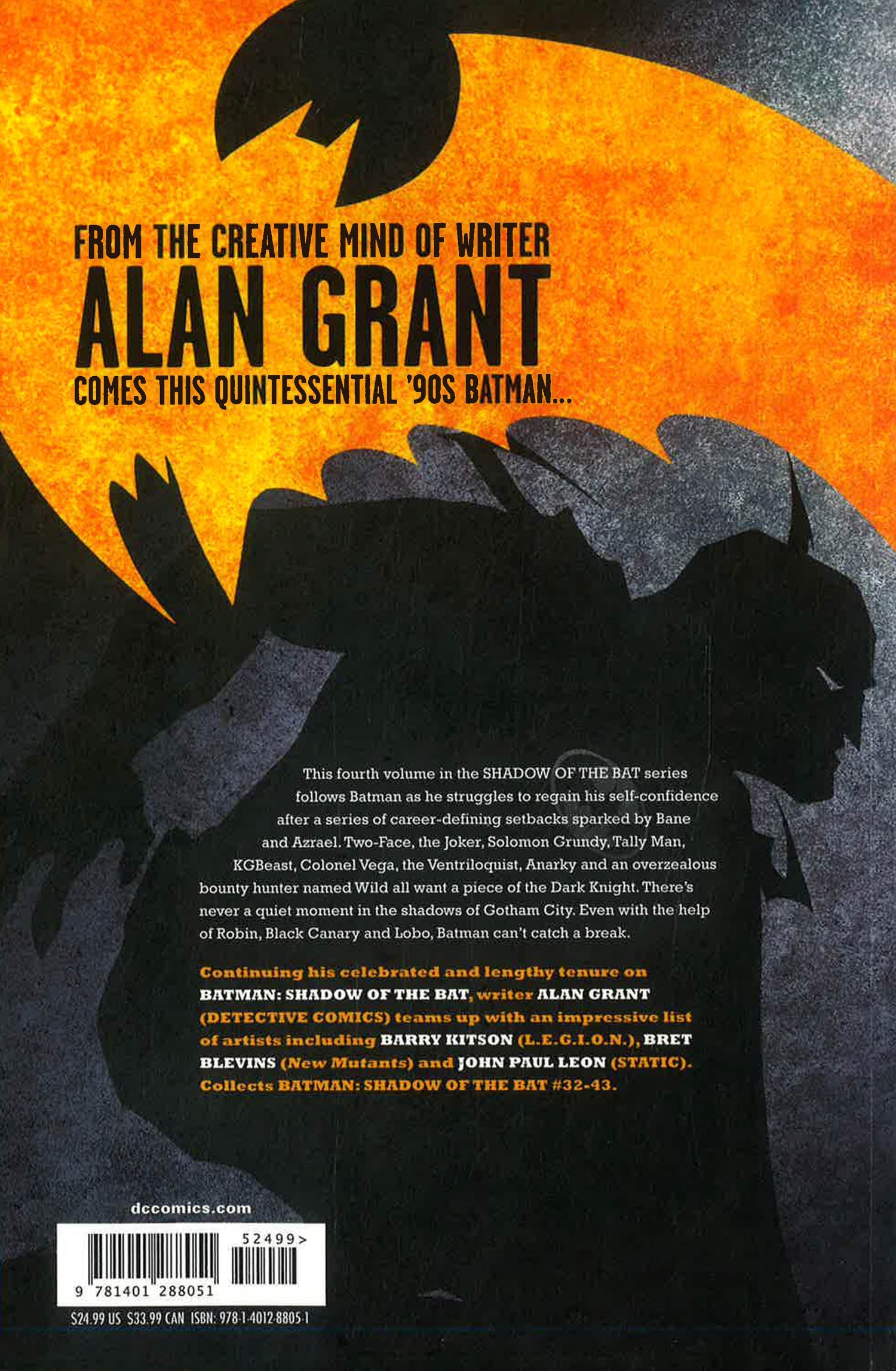 Writer Alan Grant (Detective Comics) teams up with artists including Barry Kitson (L.E.G.I.O.N.), Bret Blevins (New Mutants) and John Paul Leon (Static) for Batman: Shadow of the Bat Vol. 4. Collects Batman: Shadow of the Bat #32-43.