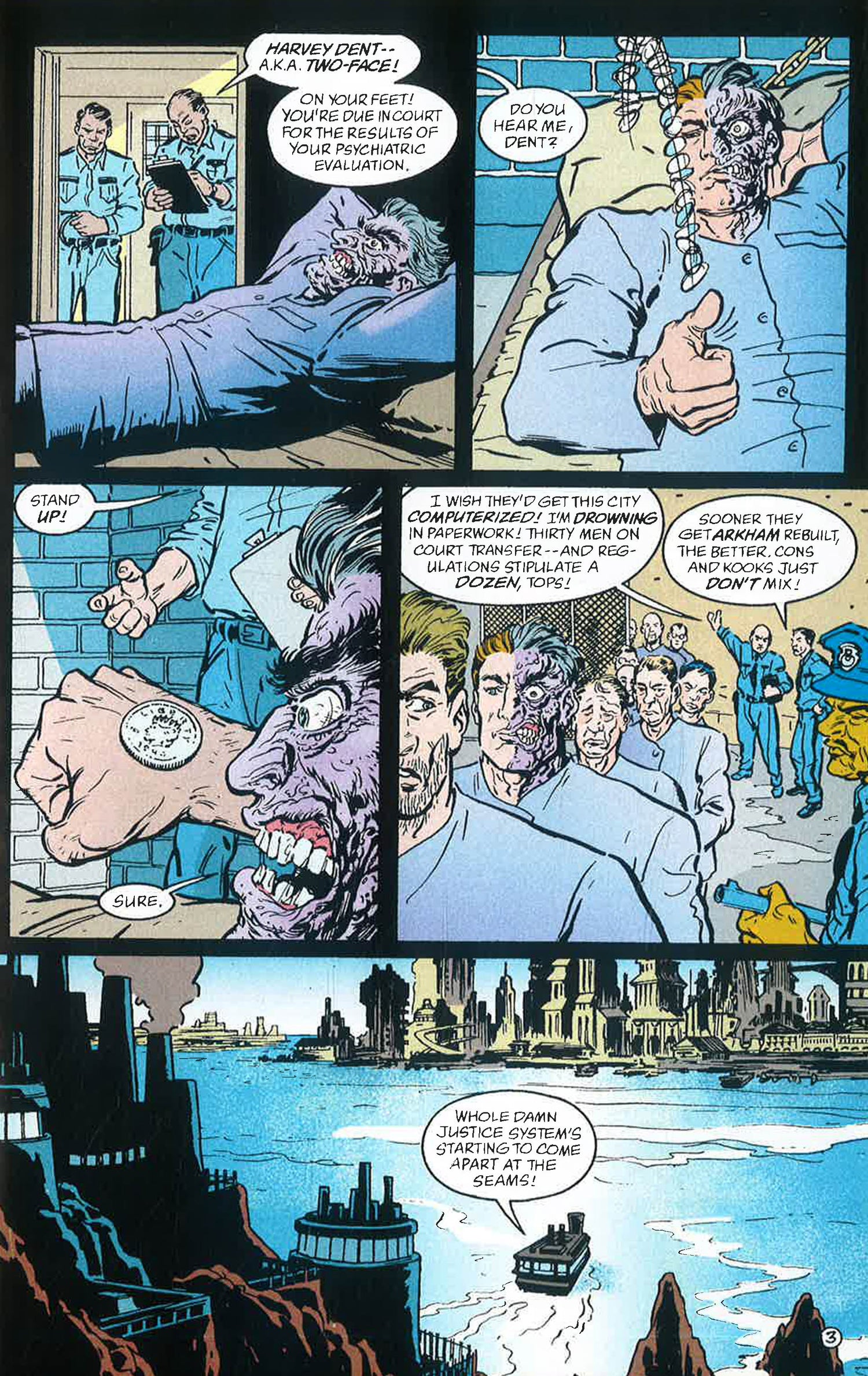 Two-Face, The Joker, Solomon Grundy, Tally Man, KGBeast, Colonel Vega, the Ventriloquist, Anarky and an overzealous bounty hunter named Wild all want a piece of the Dark Knight. There's never a quiet moment in the shadows of Gotham City. Even with the help of Robin, Black Canary and Lobo, Batman can't catch a break.