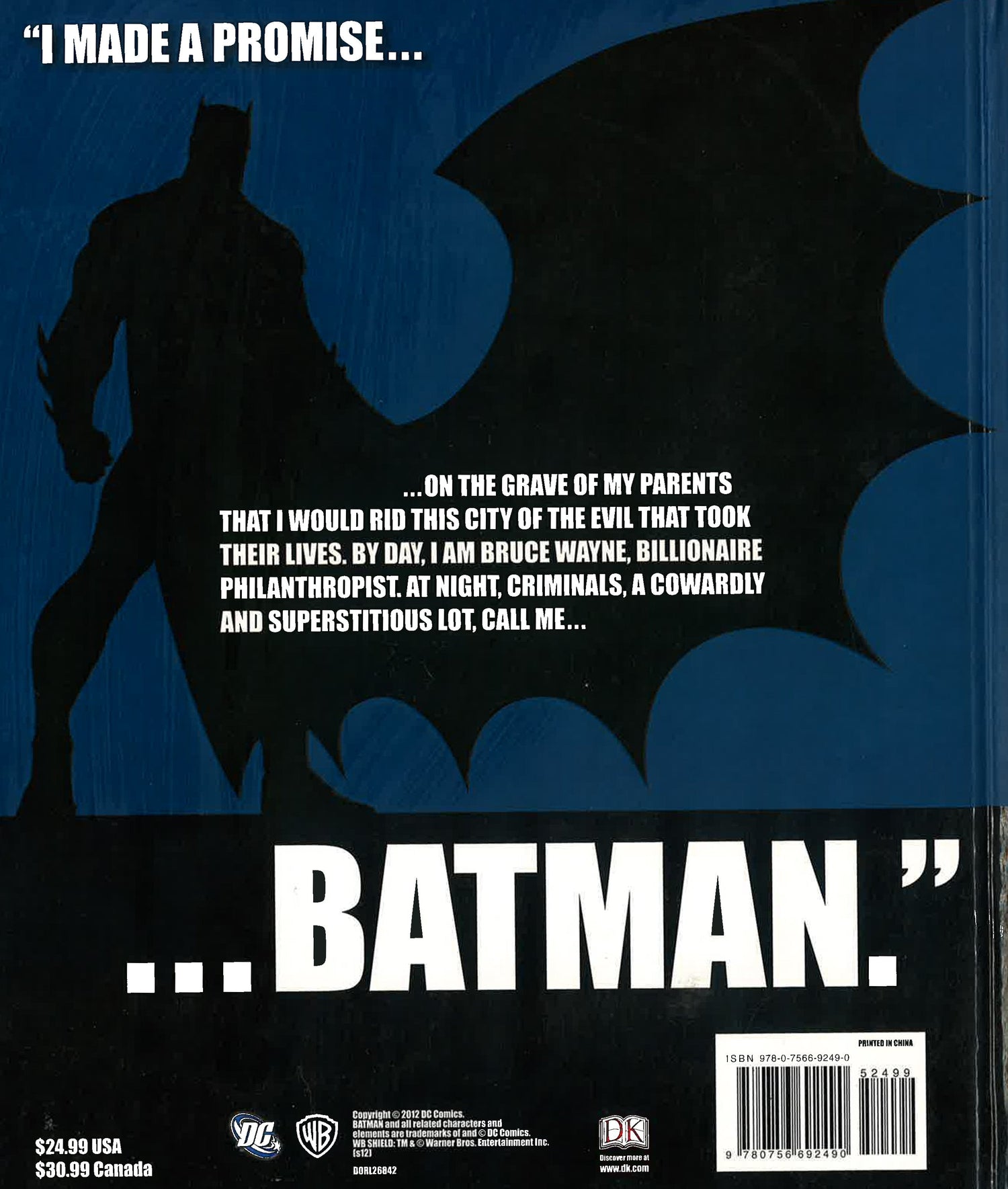 Follow every punch, kick, twist, and turn of the Dark Knight's story in Batman: The World of the Dark Knight. Tracing Batman's entire career, with full detail of his signifi cant adventures, battles, loves, allies, and enemies, this ultimate guide will leave nothing unexplored. DK's Batman: The World of the Dark Knight includes everything from how Batman came to be created and how the character was developed through the decades to key events in Batman's life that have continued to develop his story over the years. With a new, fresh look featuring intricate full-color comic book art, Batman: The World of the Dark Knight is a comic enthusiast's dream come true!