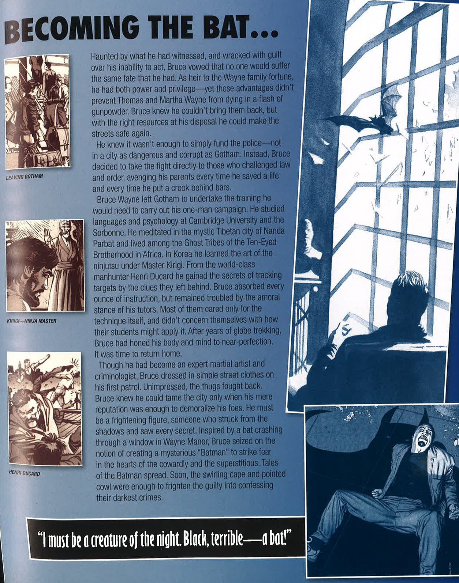 Who hides in the shadows, an often constant but unseen presence? Who strives to rid the city of the evil that lurks through the streets? Who is he? BATMAN.