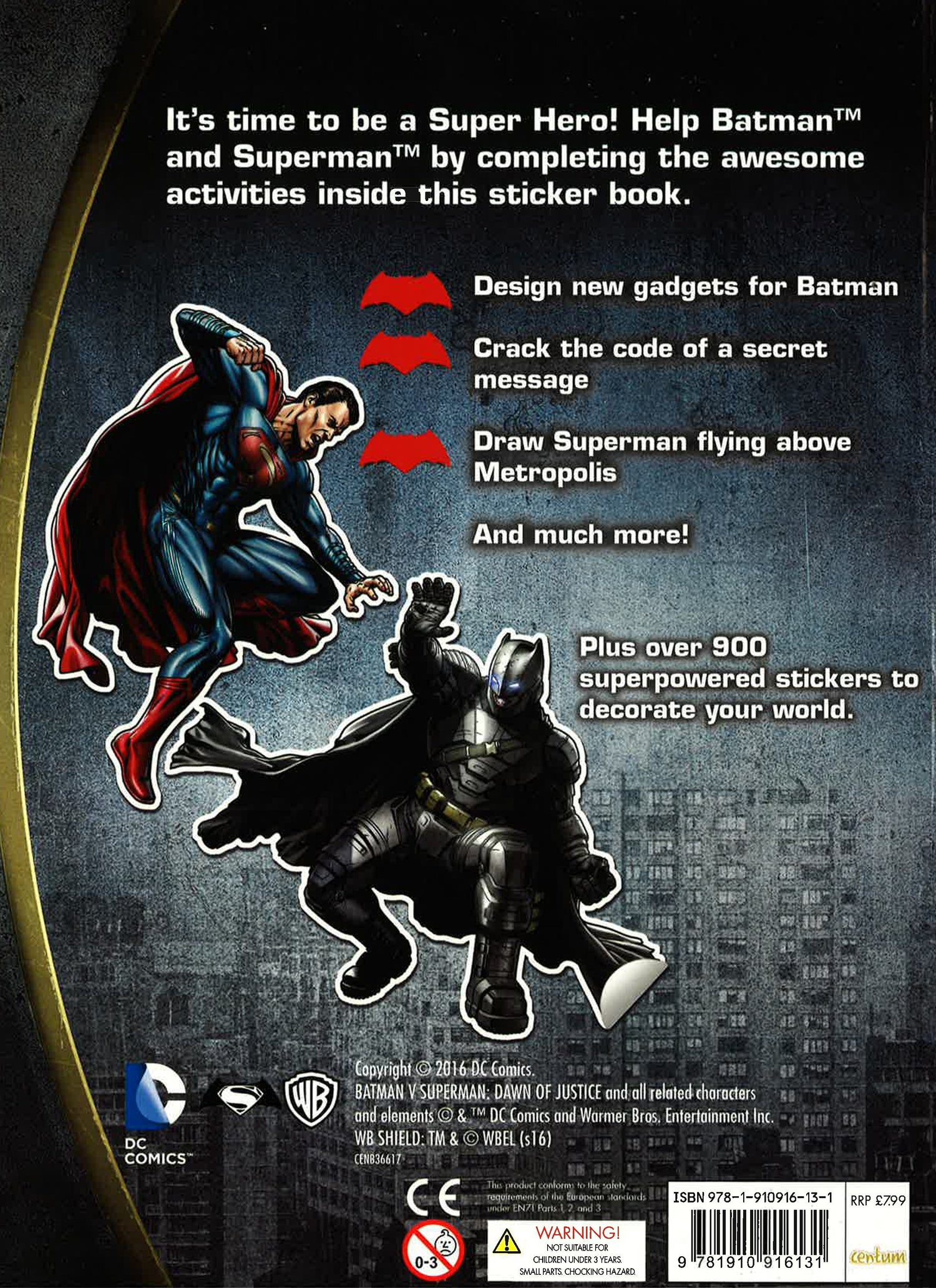 Mega sticker book containing over 900 stickers! Batman Vs Superman Dawn Of Justice: get stickers of all your favourite superheroes - Batman, Superman and Wonder Woman.