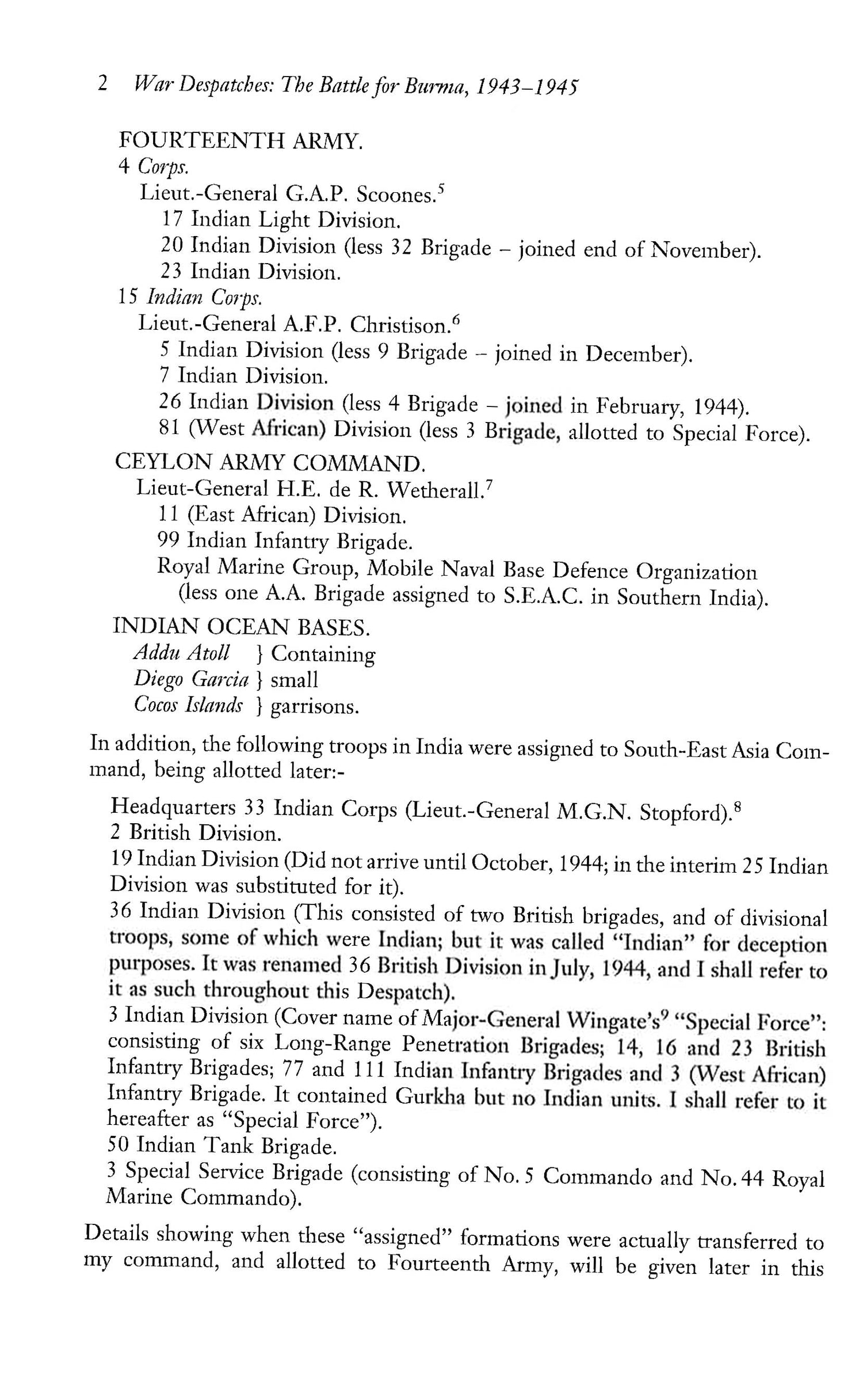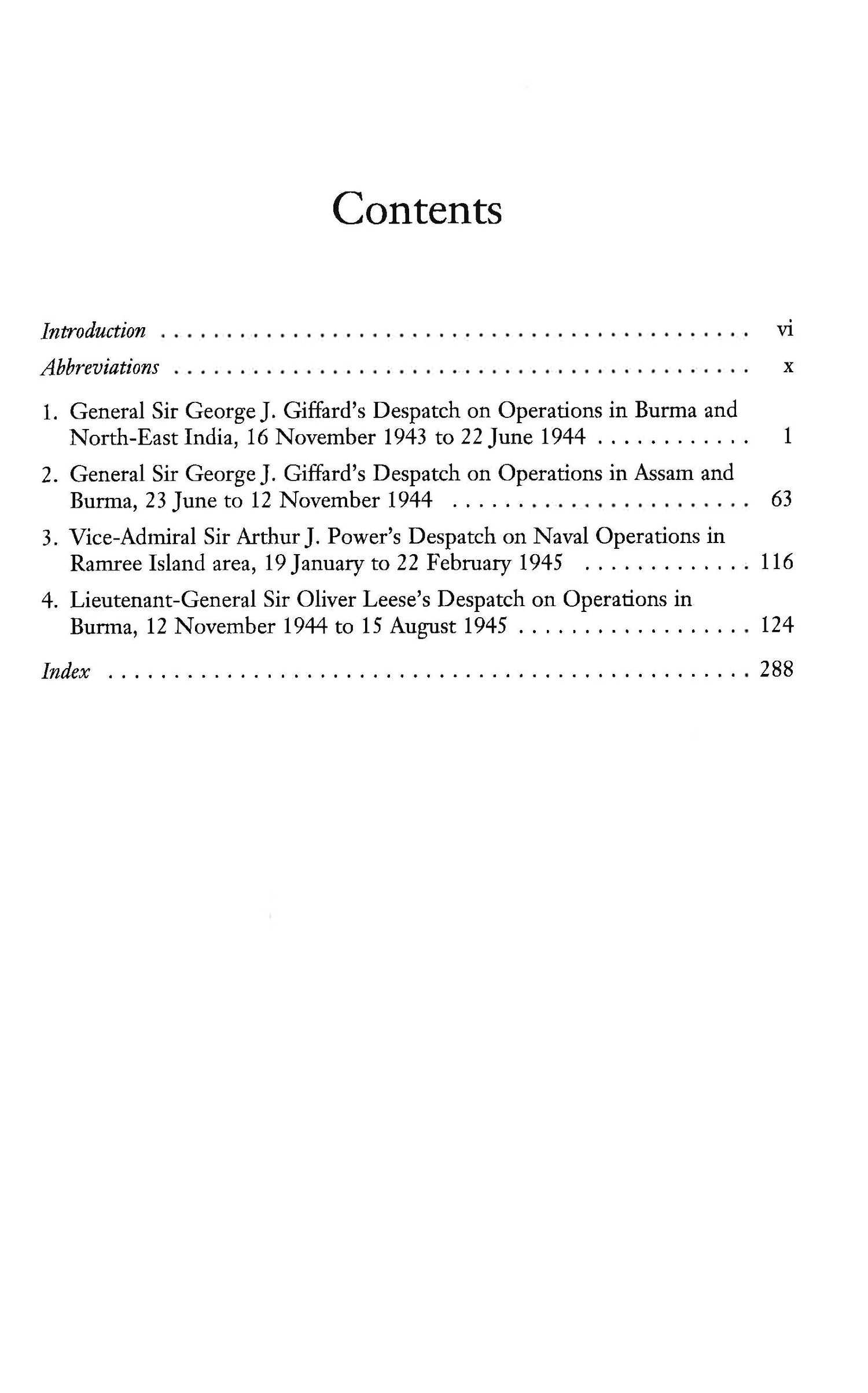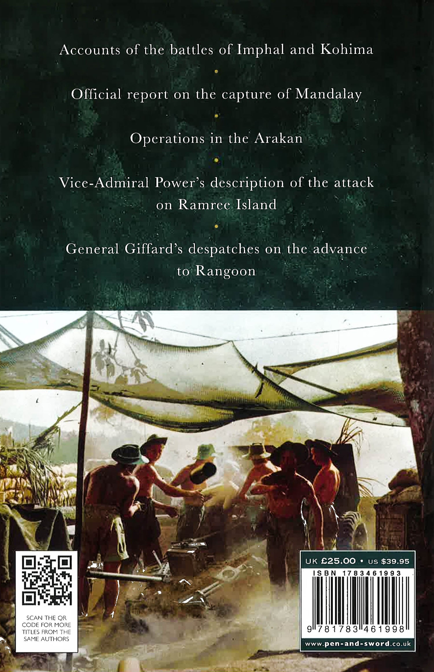 Despatches in this volume include that on operations in Burma and North-East India between November 1943 and June 1944, by General Sir George J. Giffard; the despatch on operations in Assam and Burma between June 1944 June and November 1944, by General Sir George J. Giffard, Commander-in-Chief; the despatch on Naval operations in the Ramree Island area (Burma) in January and February 1945 by Vice-Admiral Sir Arthur J. Power, Commander-in-Chief, East Indies Station; and the despatch on operations in Burma between November 1944 and August 1945 by Lieutenant-General Sir Oliver Leese. This unique collection of original documents will prove to be an invaluable resource for historians, students and all those interested in what was one of the most significant periods in British military history.