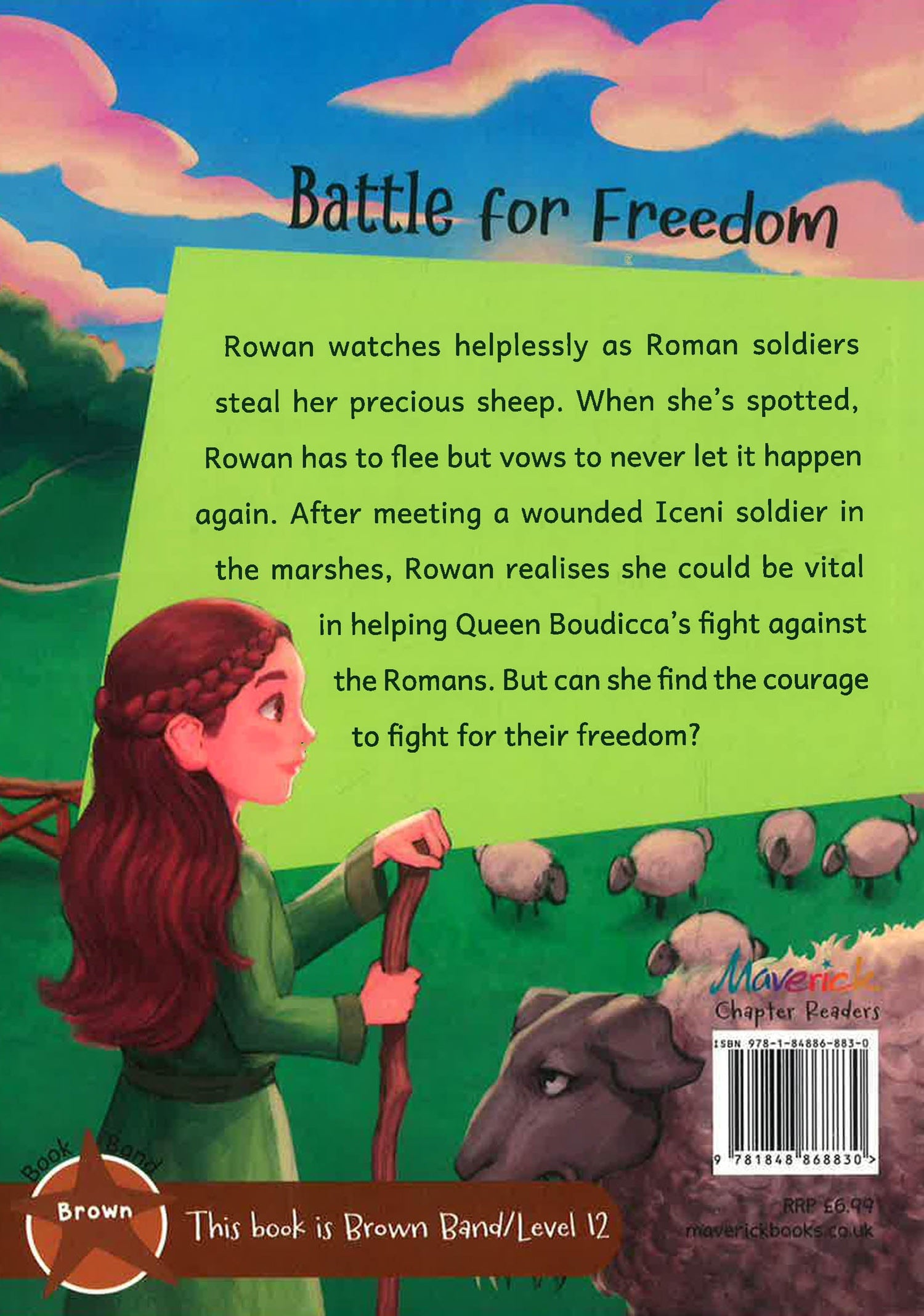 Rowan watches helplessly as Roman soldiers steal her precious sheep. When she's spotted, Rowan has to flee but vows to never let it happen again. After meeting a wounded Iceni soldier in the marshes, Rowan realises she could be vital in helping Queen Boudicca's fight against the Romans. But can she find the courage to fight for their freedom?