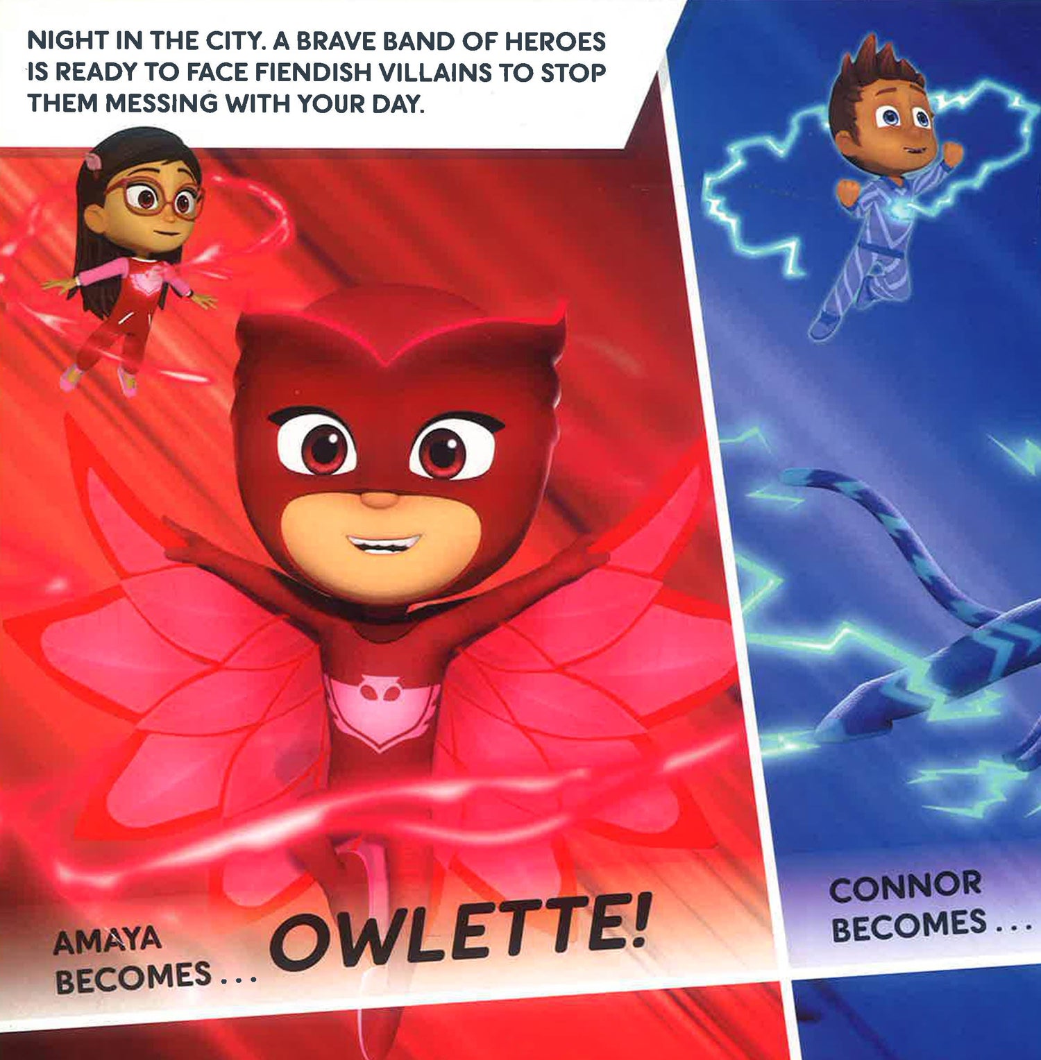 This cool adventure storybook is based on the episode 'Owlette and the Battling Headquarters' - Amaya notices that the Ninjalinos are stealing all the school buses, and it turns out that Night Ninja is using the stolen buses to build a headquarters to rival the PJ Masks'! At first Owlette is worried that the PJ Masks' HQ cannot fight back power-for-power, but eventually the PJ Masks work together to beat the baddies. PJ Masks all shout hooray!