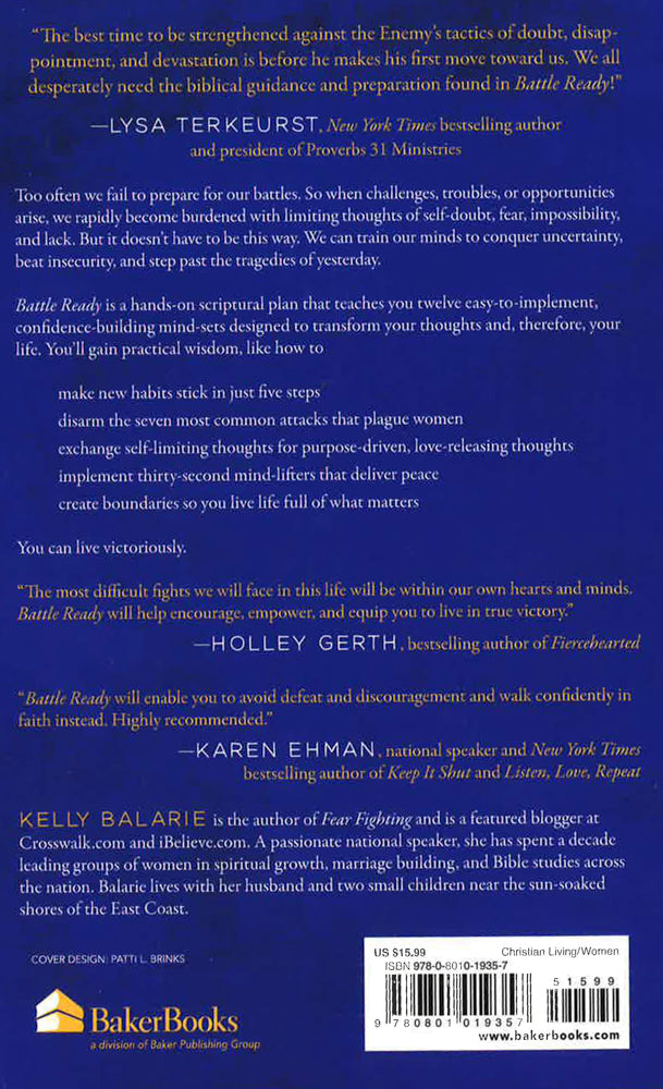 Too often we fail to prepare for our battles. So when challenges, troubles, or opportunities arise, we rapidly become burdened with limiting thoughts of self-doubt, fear, impossibility, and lack. But it doesn't have to be this way. We can train our minds to conquer uncertainty, beat insecurity, and step past the tragedies of yesterday. Battle Ready is a hands-on scriptural plan that teaches you twelve easy-to-implement, confidence-building mind-sets designed to transform your thoughts and, therefore, your life. You'll gain practical wisdom, like how to • make new habits stick in just five steps • disarm the seven most common attacks that plague women • exchange self-limiting thoughts for purpose-driven, love-releasing thoughts • implement thirty-second mind-lifters that deliver peace • create boundaries so you live life full of what matters